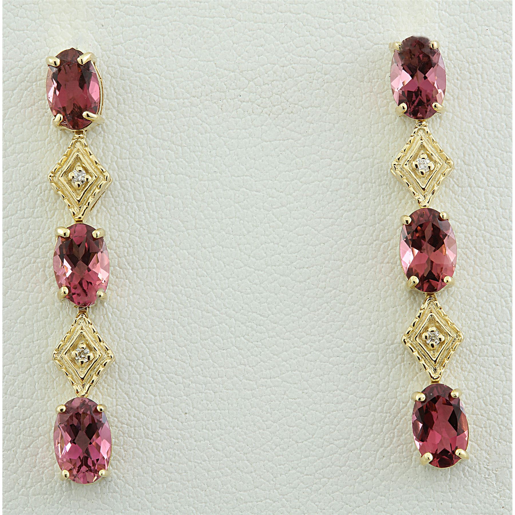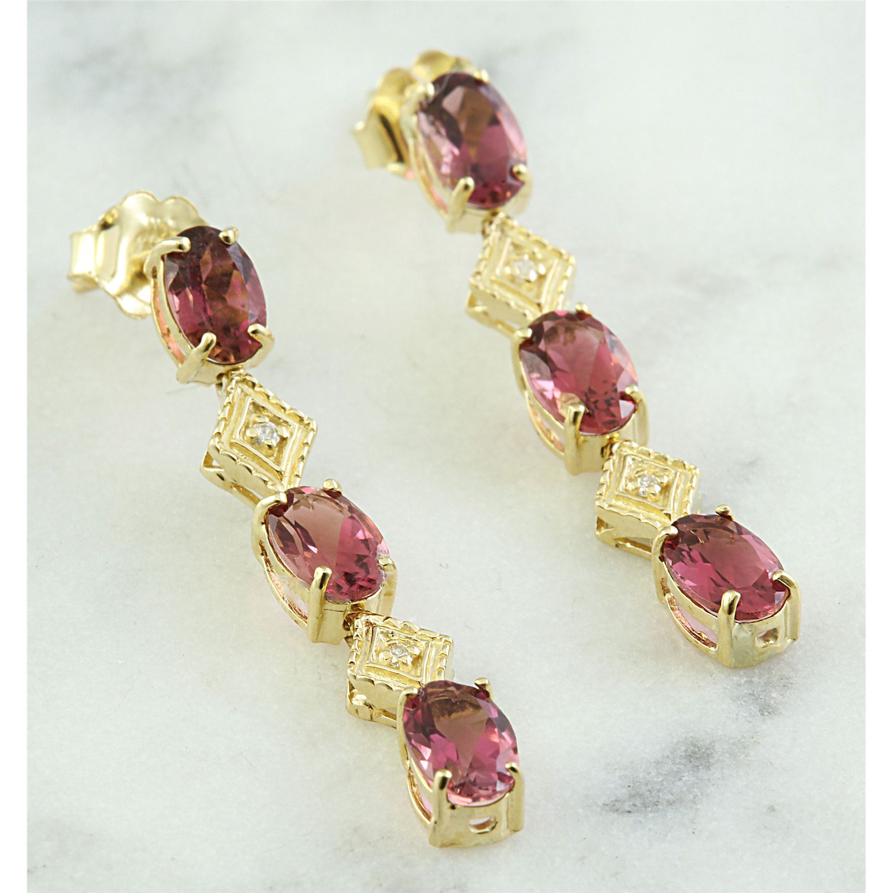 2.65 CTW Tourmaline 18K Yellow Gold Diamond Earrings