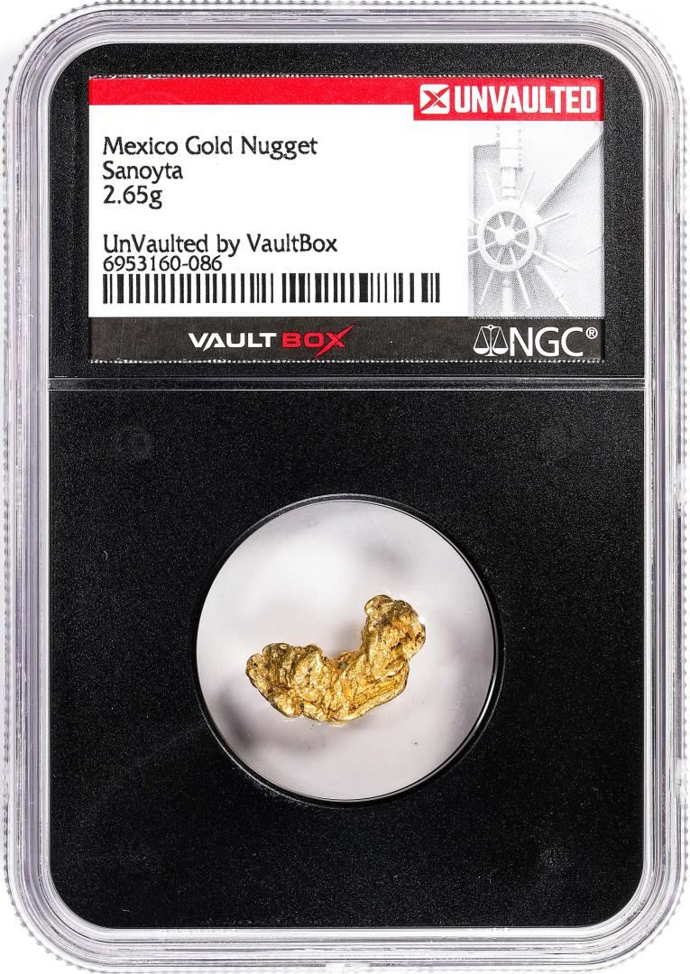 One 2.65 Gram Sanoyta Mexico Gold Nugget NGC Vaultbox Unvaulted. NGC Certified.