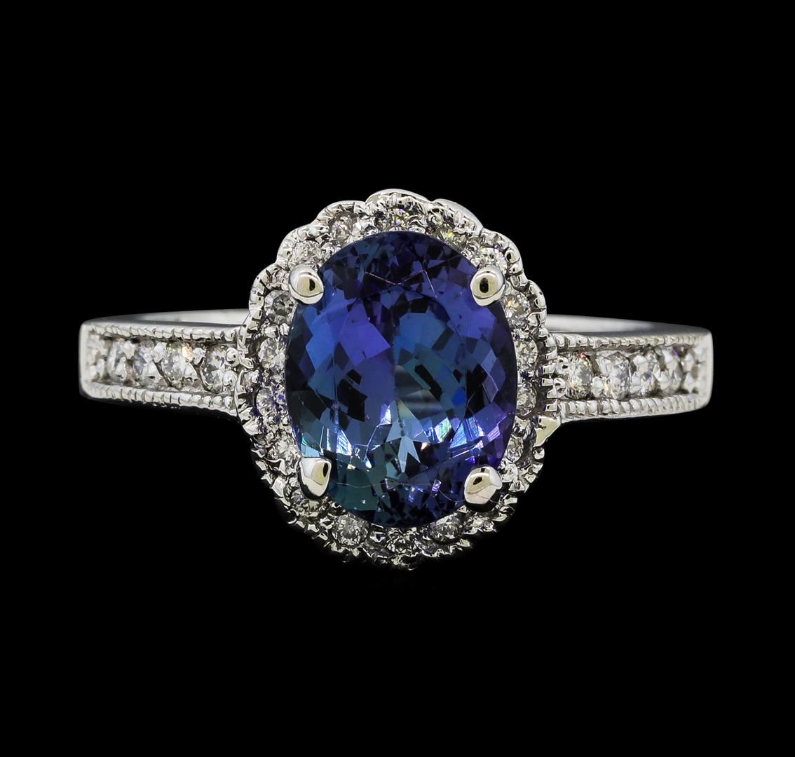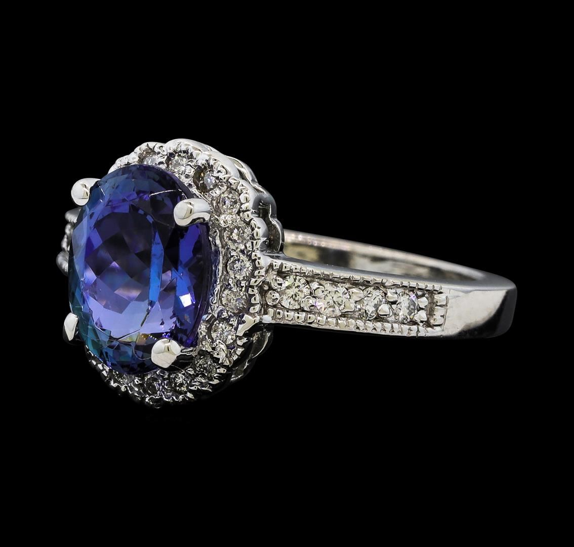 One Tanzanite and Diamond Ring including: 14KT White Gold weighing a total of 4.63 grams, Tanzanite weighing a total of 2.65ct, and 26 Diamonds weighing a total of 0.28ctw.