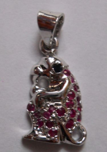 2.650g Monkey Shape Pendant of Ruby and Sapphire in Silver