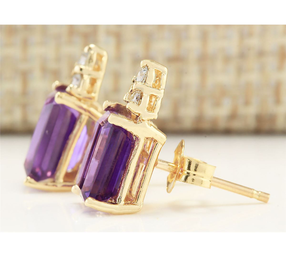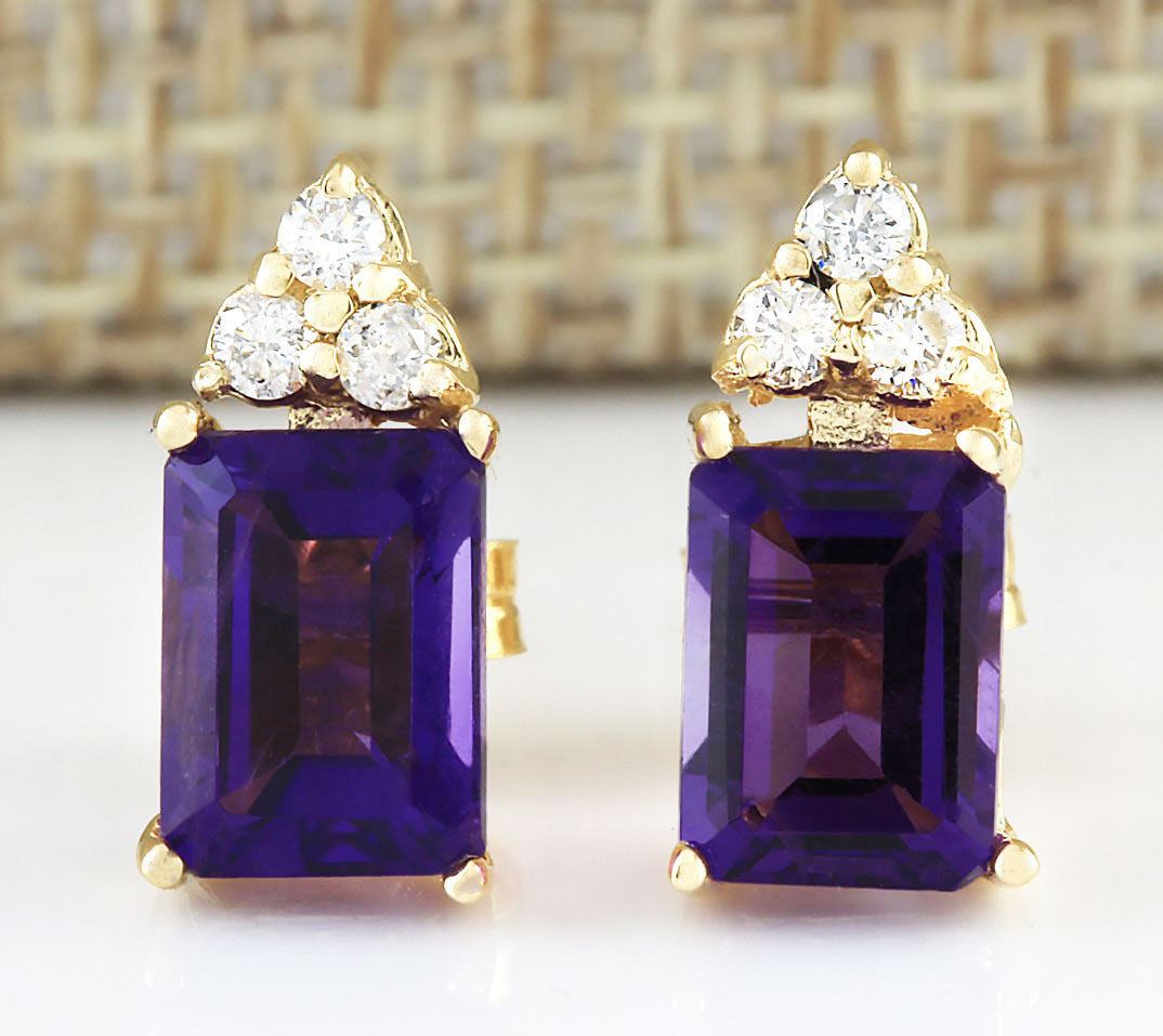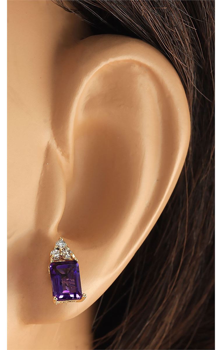 Stamped: 14K Total Earring Weight: 1.2Grams Diamond Weight: Total natural diamond weight is .16carat. SI1-SI2 clarity / G-H color Gemstone Weight: Total Natural Amethyst Weight is 2.50ctw (Measures: 7.15x5.20mm) Main Stone Color: Purple Face Measure: 1.98x15.20mm SKU: [703306]