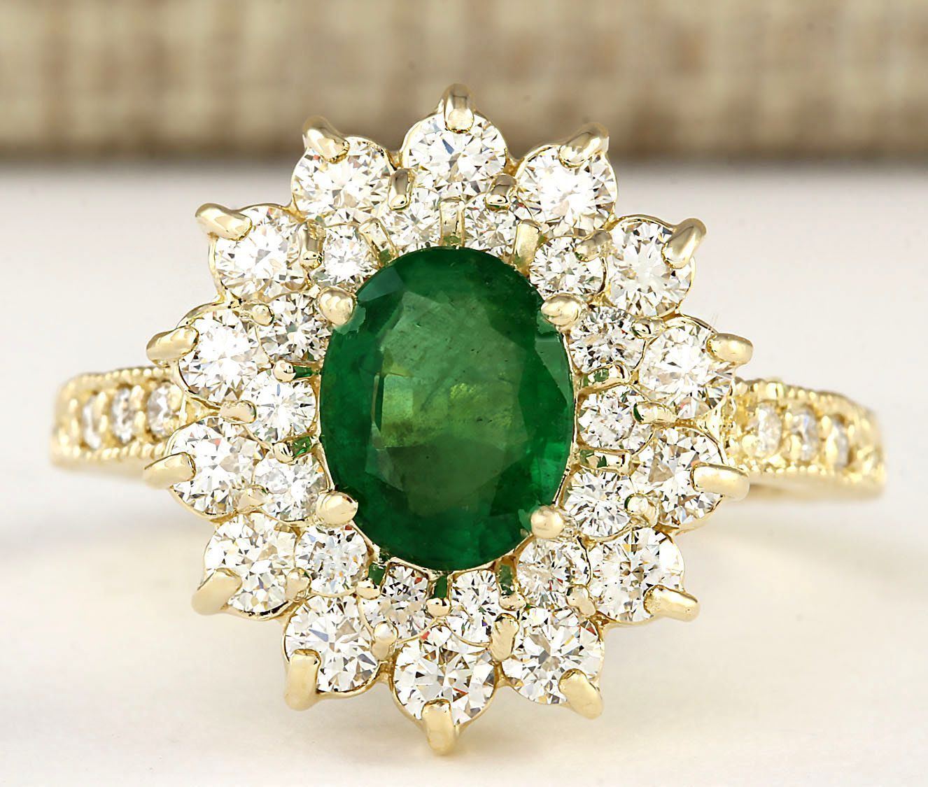 2.66 CTW Natural Emerald And Diamond Ring In 14k Yellow Gold