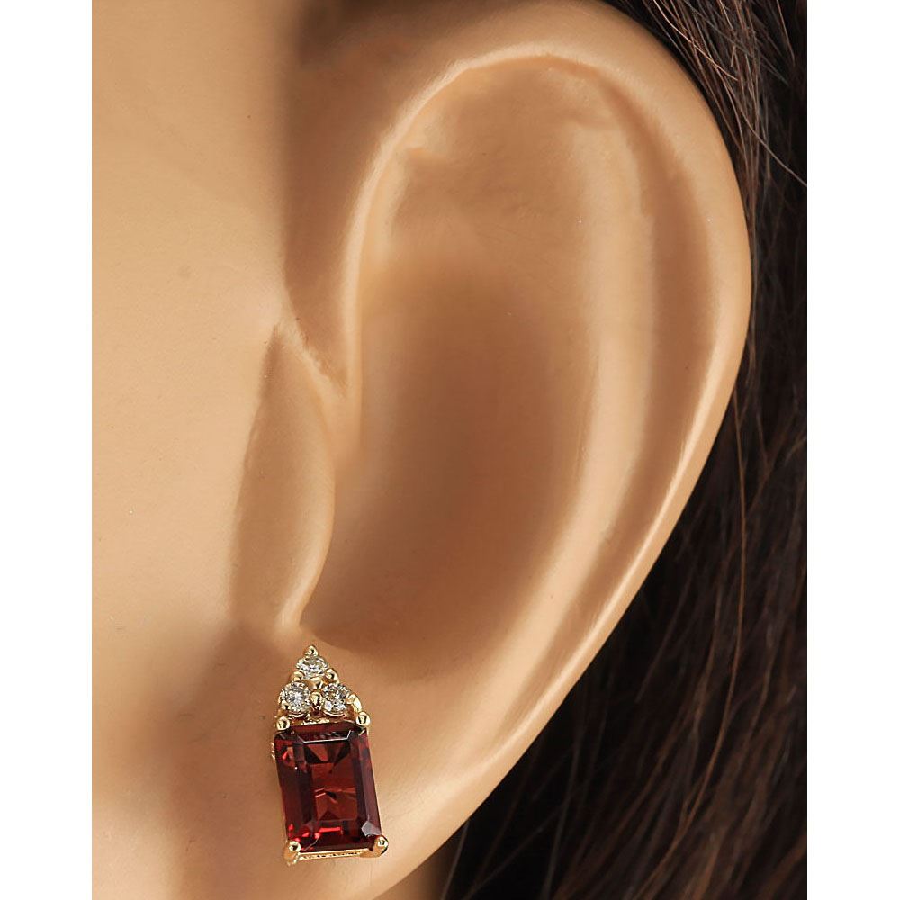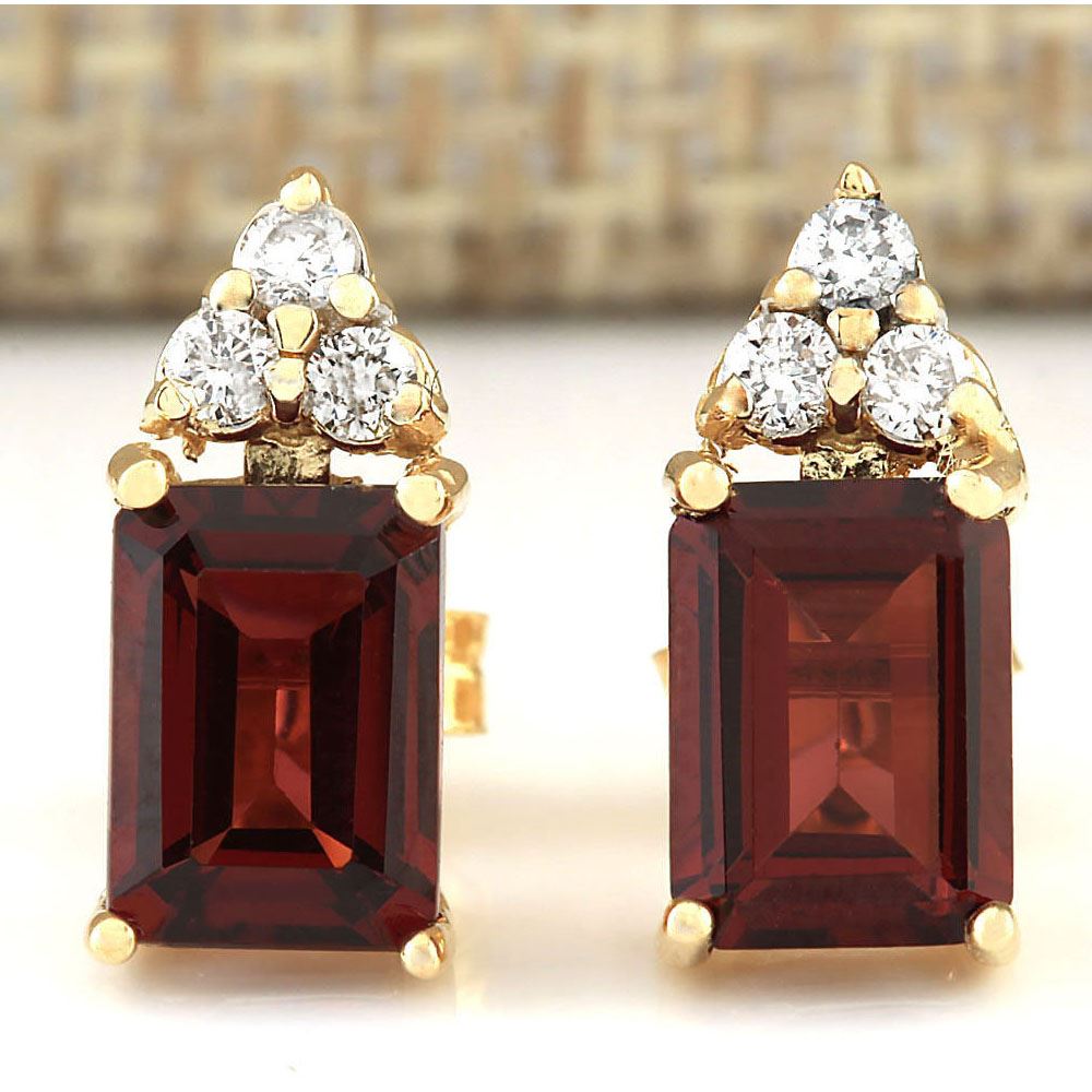2.66 CTW Natural Garnet And Diamond Earrings 14k Solid Yellow Gold