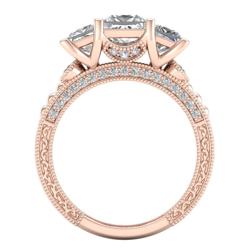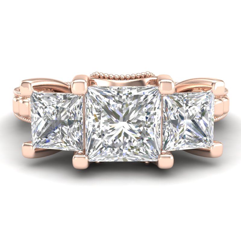 REF-581A8X -37158 ---- 2.66 CTW Princess VS/SI Diamond Art Deco 3 Stone Ring 18K Rose Gold ---- Luxury Designer Brand 3 stone ring Appraised at $28,800 Certificate Number US37158 18k Rose gold, 3 stone ring Size is 7, 3 stone ring measuring approx. Uniform, weighing in total approx. 6 grams. Made in the USA and is stamped 18k, Main stone 1.03 carat total weight containing 1 pieces of H-J color with VS/SI quality Princess shape cut Diamond , Stone #2 1.08 carat total weight containing 2 pieces of H-I color with VS/SI quality Princess shape cut Diamond , Stone #3 0.55 carat total weight containing 42 pieces of G-H color with VS/SI quality Round shape cut Diamond