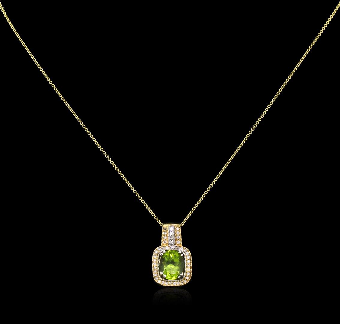 One pendant with chain featuring: 14KT yellow and white gold weighing 5.50 grams containing one peridot with a total weight of 2.66ct and diamonds with a total weight of 0.34ct.