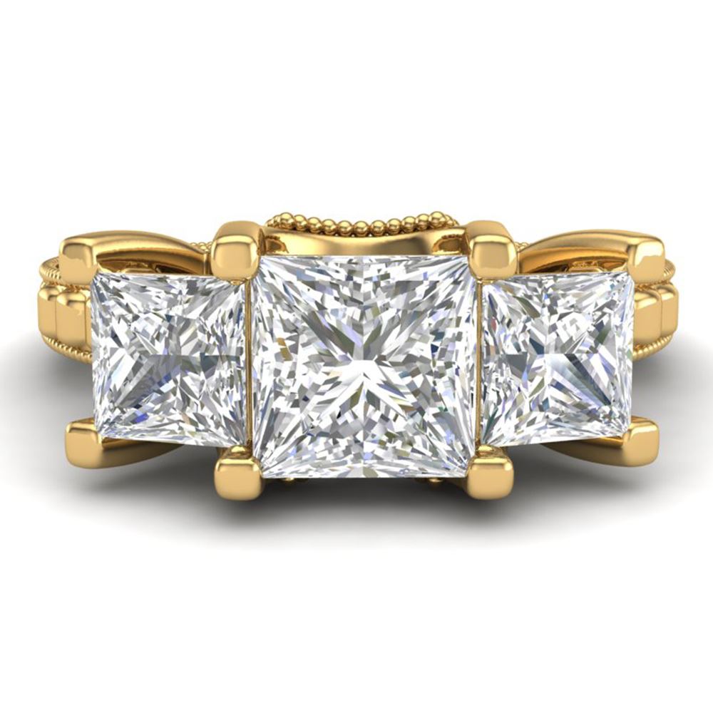 REF-581W8H - SKU: 37159 ---- 2.66 ctw Princess VS/SI Diamond Art Deco 3 Stone Ring 18k Yellow Gold