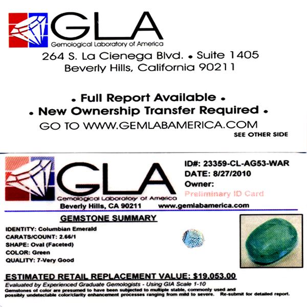 Excellent green colored specimen oval cut; lab quality evaluation 7; treatment as noted; Gem Guide wholesale $2660-$3990; full retail appraisal $19053; full lab evaluation available