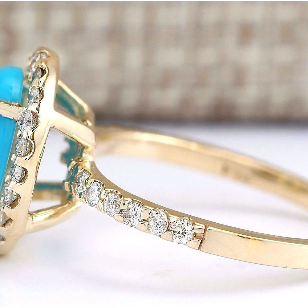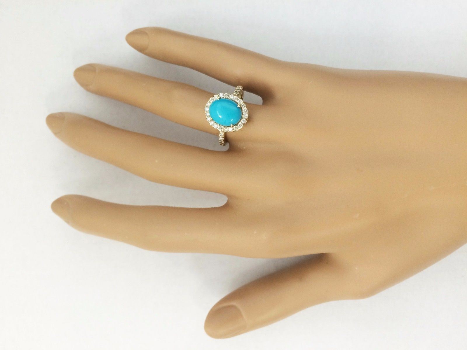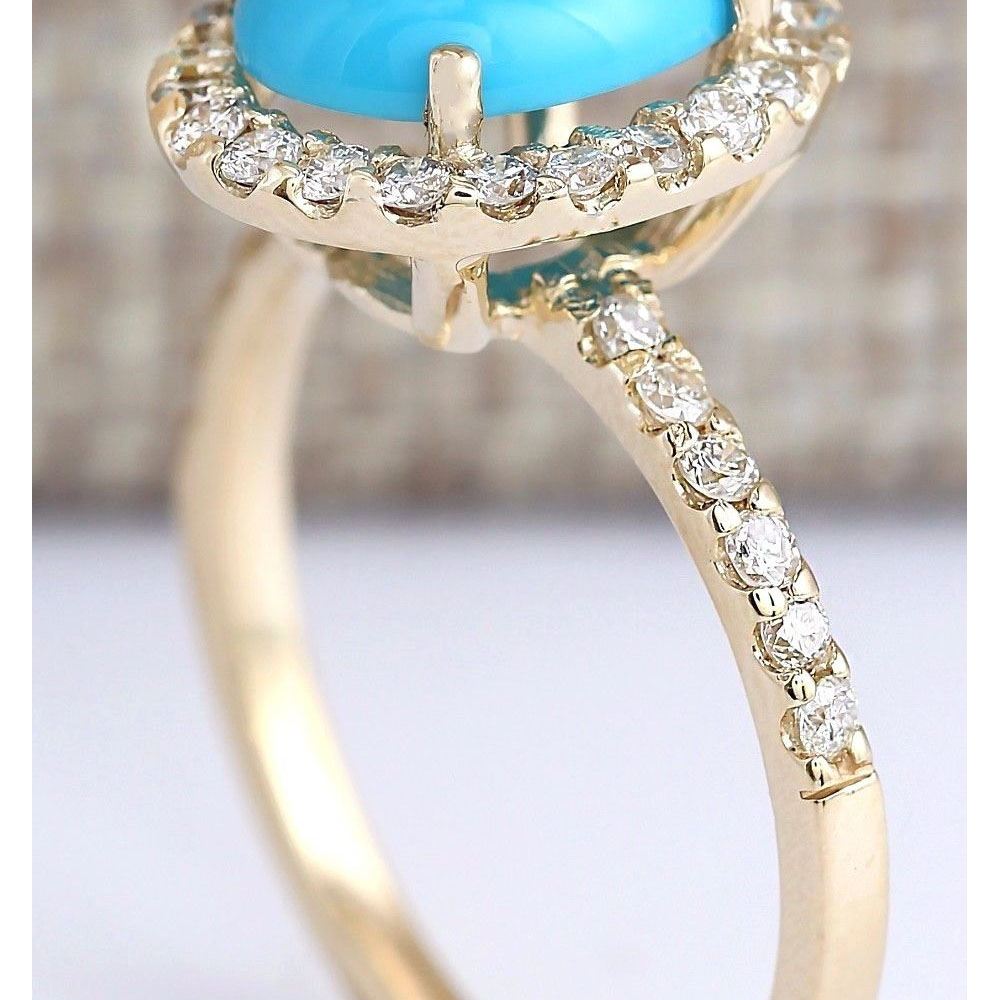 2.67 CTW Natural Turquoise And Diamond Ring In 14k Yellow Gold