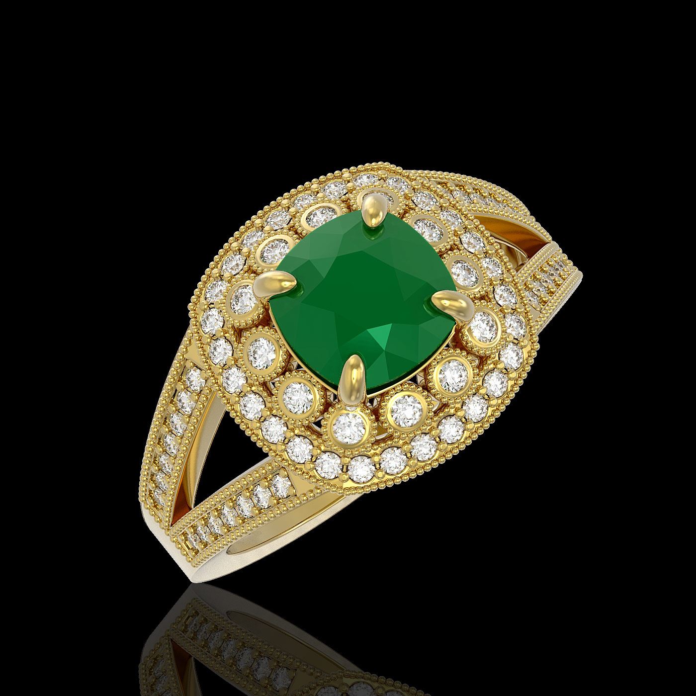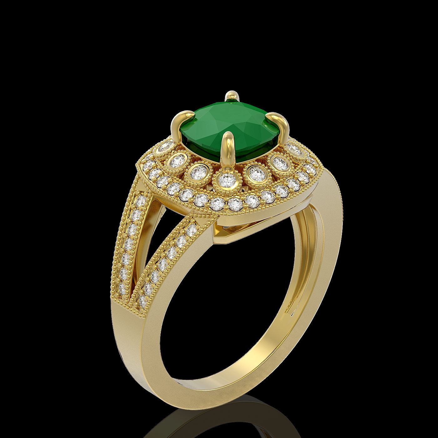 REF-104M9G - SKU: 44026 ---- 2.69 ctw Certified Emerald & Diamond Victorian Ring 14K Yellow Gold