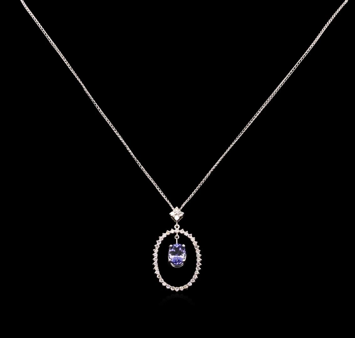 One pendant with chain featuring: 14KT white gold weighing 3.04 grams containing one tanzanite center stone with a total weight of 2.69ct and 40 diamonds with a total weight of 0.69ct.
