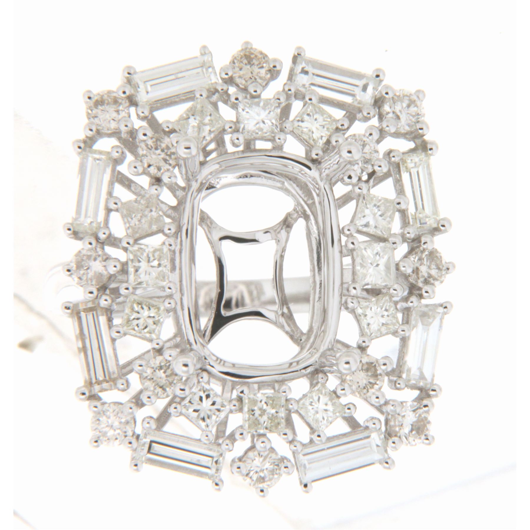 REF-285F4N - JF413948 ---- 2.7 CTW Baguette & Princess Diamond Semi Mount Ring 14K White Gold