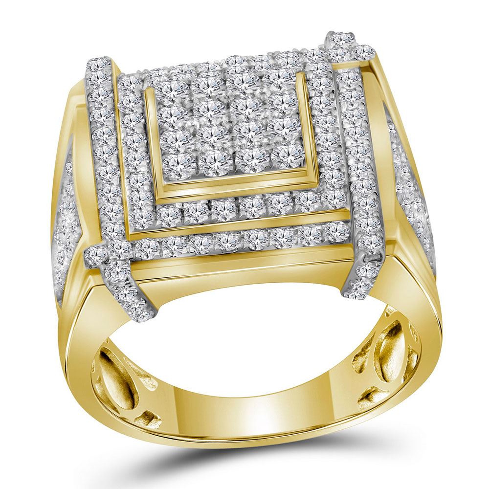 REF-179F9N- SKU: GD115138 ---- 2.7 CTW Mens Diamond Square Cluster Ring 10KT Yellow Gold
