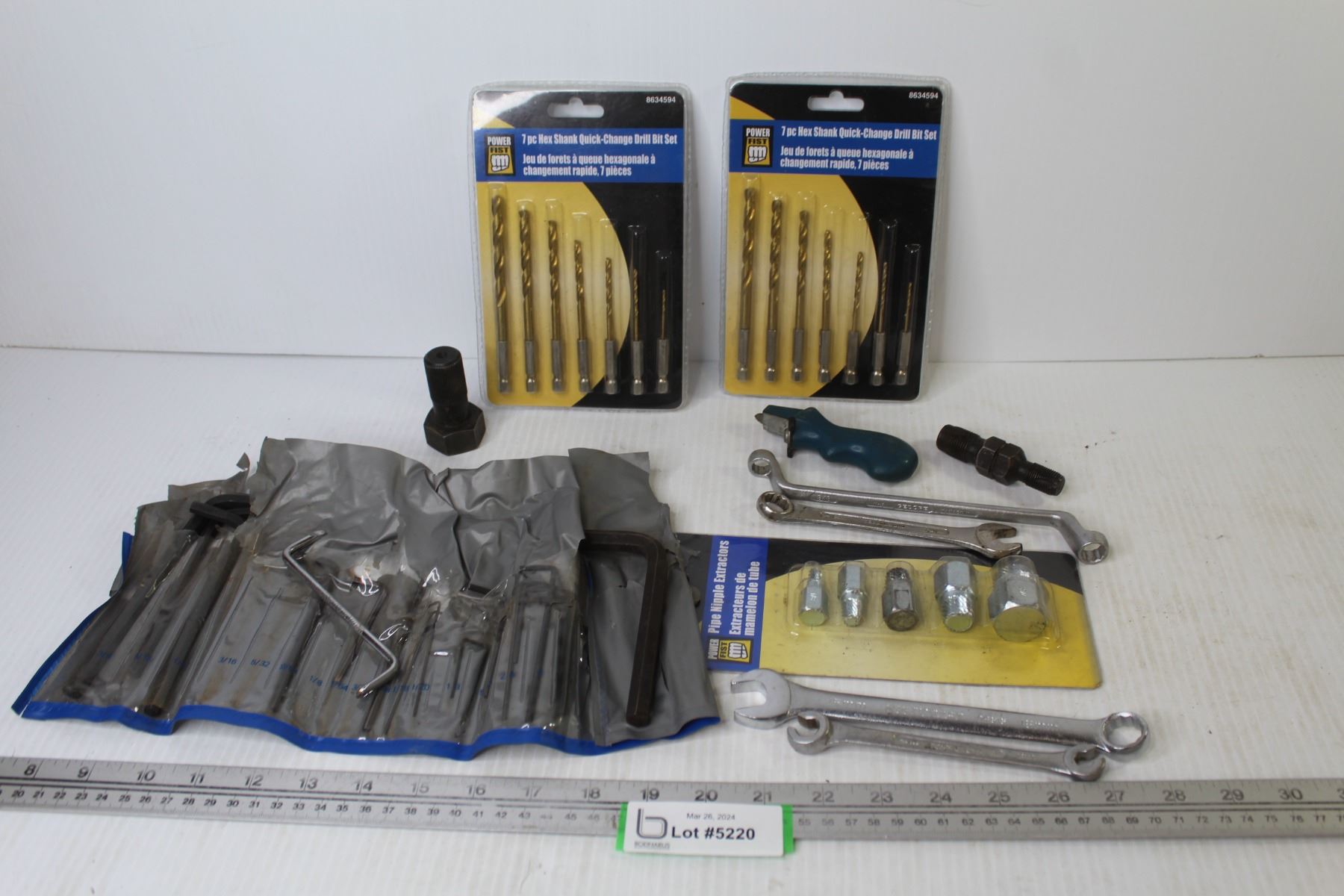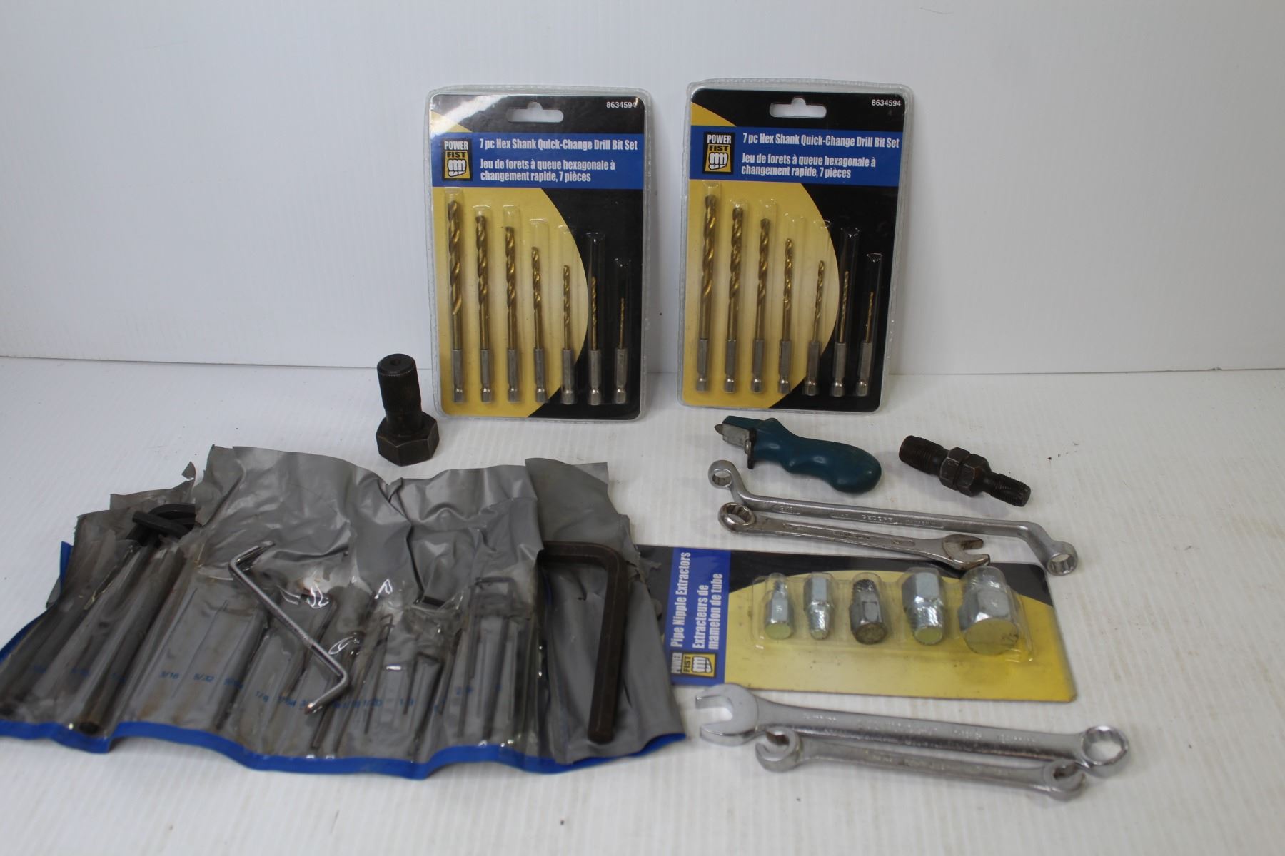 (2) 7 Piece Hex Shank Drill Bits - Pipe Nipple Extractors - Allan Keys - Misc. Hand Tools