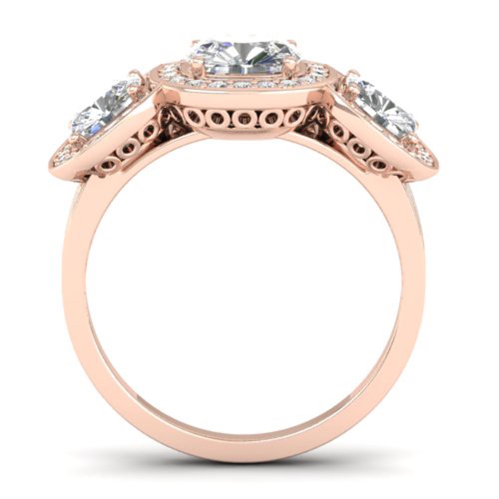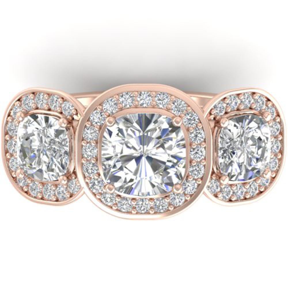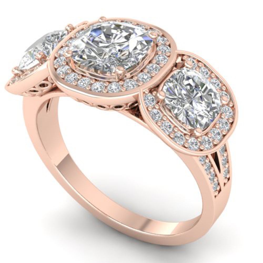 SKU: 30343 ---- 2.7 ctw Cushion VS/SI Diamond Art Deco 3 Stone Ring 14k Rose Gold
