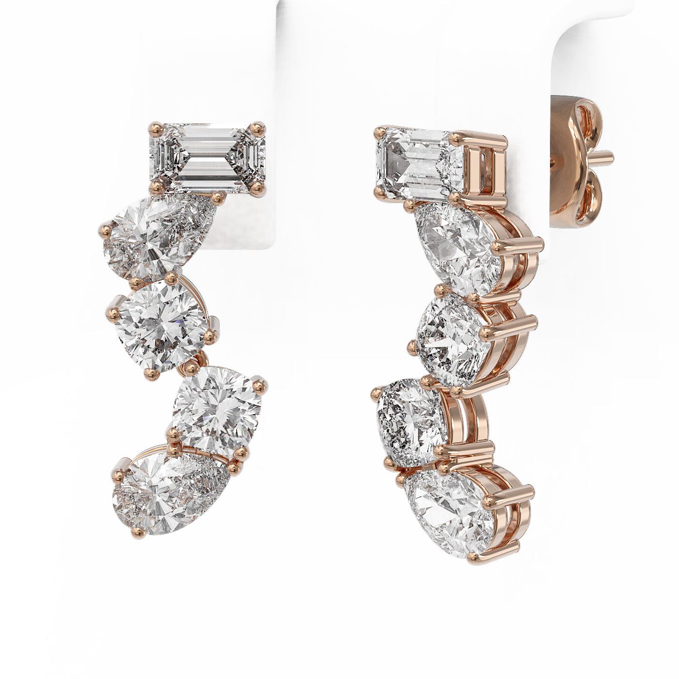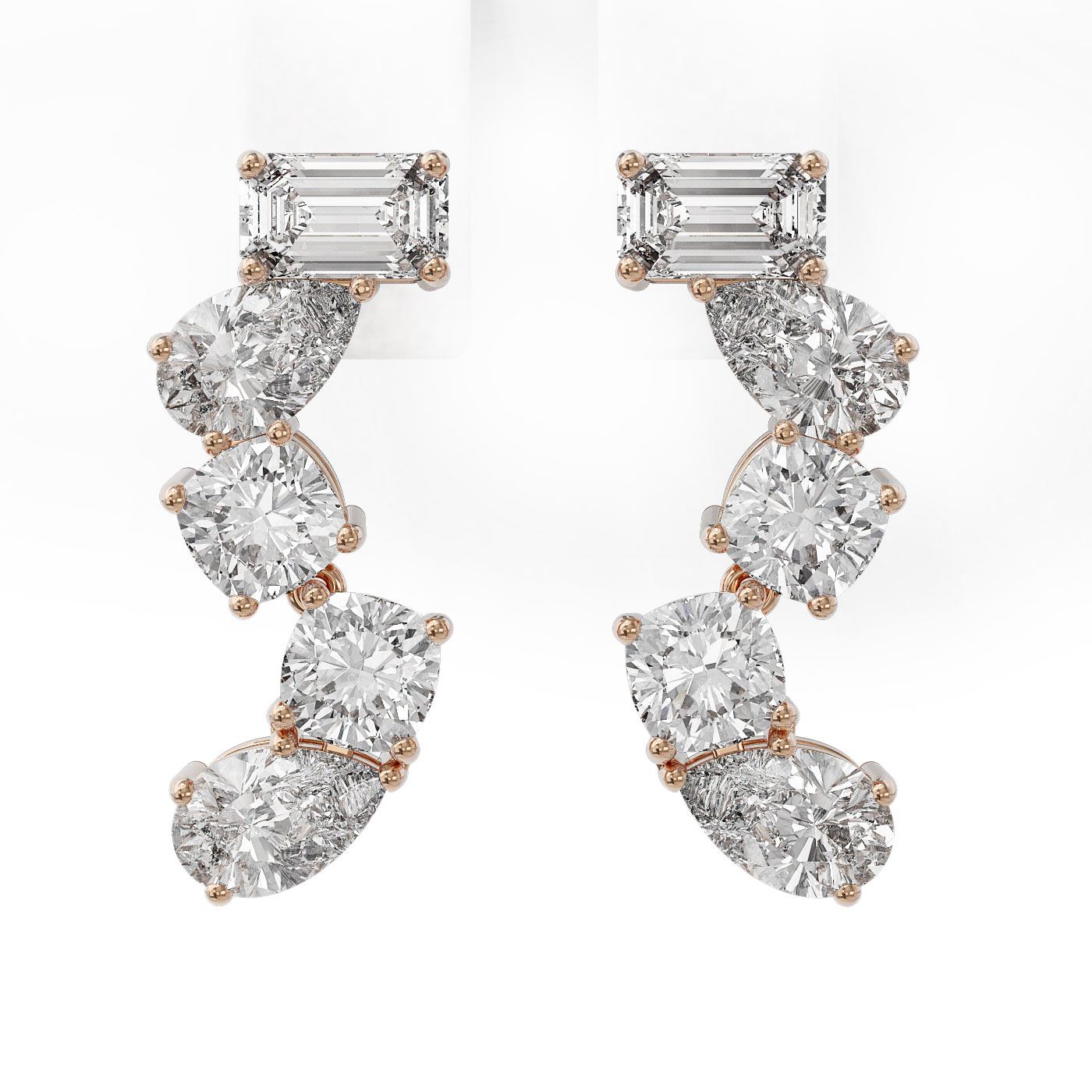 REF-375R3K - SKU: 47332 ---- 2.7 ctw Mix Cut Diamonds Designer Earrings 18K Rose Gold