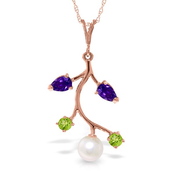 Genuine 14K Rose Gold 2.7 ctw Multi-gemstone Necklace