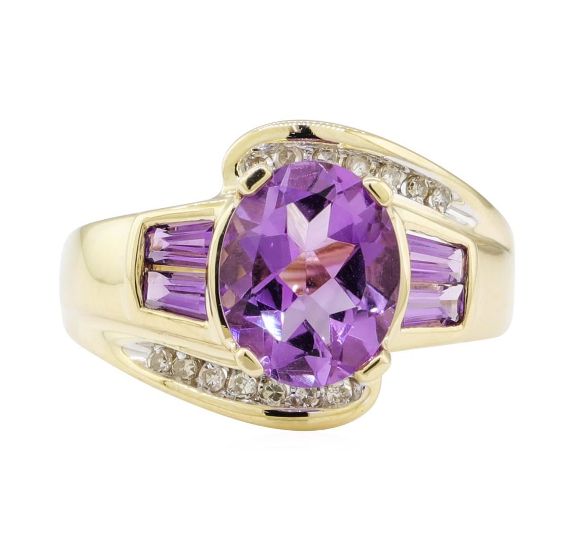 One ring featuring: 14KT yellow gold weighing 4.2 grams containing amethysts weighing 2.50ctw and diamonds weighing 0.20ctw.