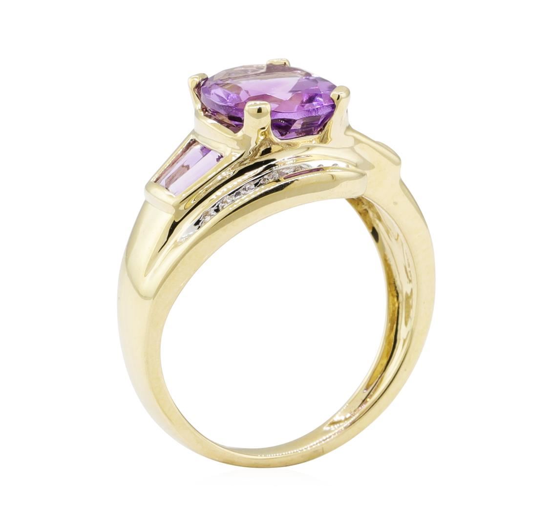 One ring featuring: 14KT yellow gold weighing 4.2 grams containing amethysts weighing 2.50ctw and diamonds weighing 0.20ctw.