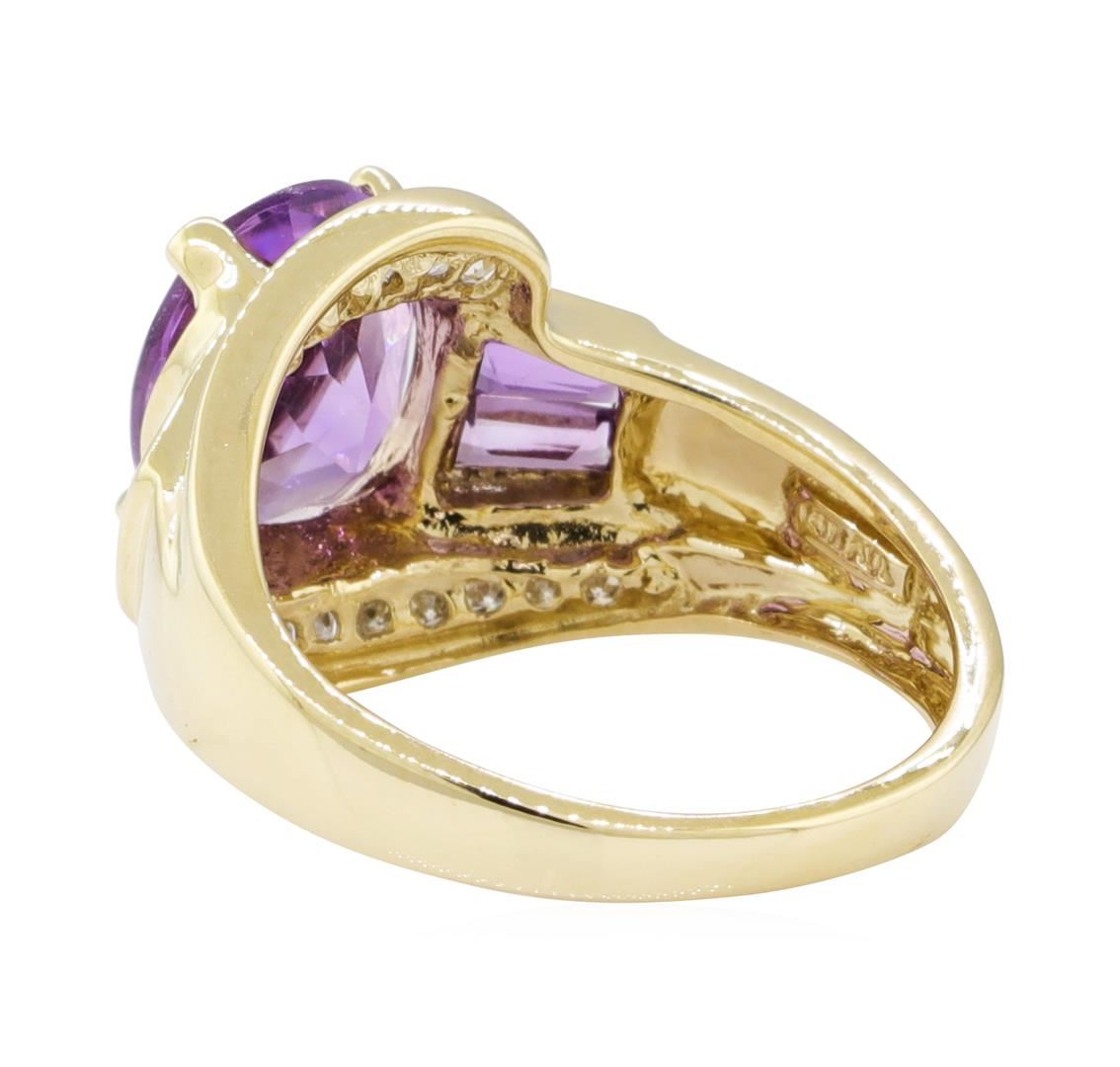 One ring featuring: 14KT yellow gold weighing 4.2 grams containing amethysts weighing 2.50ctw and diamonds weighing 0.20ctw.