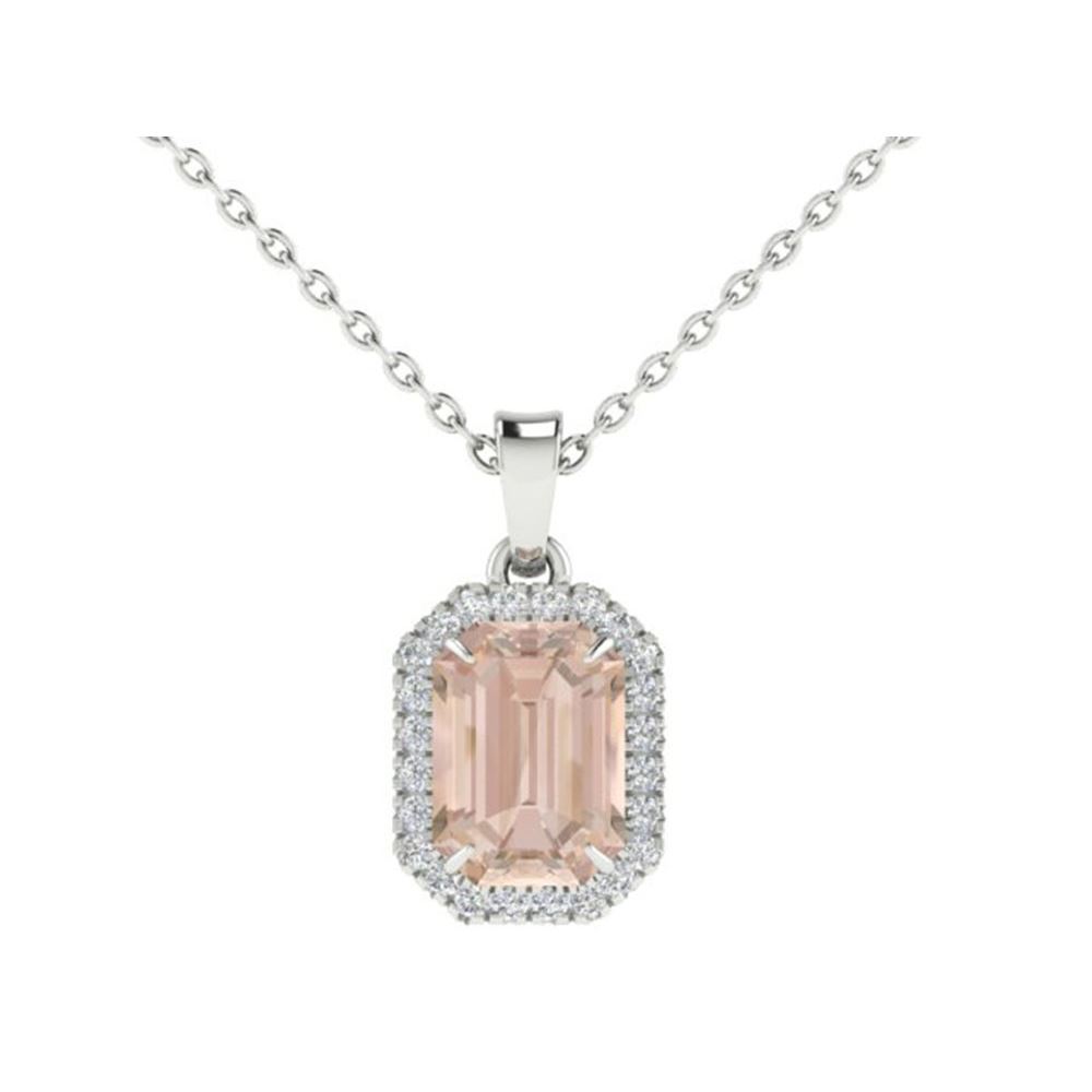 REF-83N3F - SKU: 21364 ---- 2.70 ctw Morganite & Micro Pave Diamond Necklace 18k White Gold