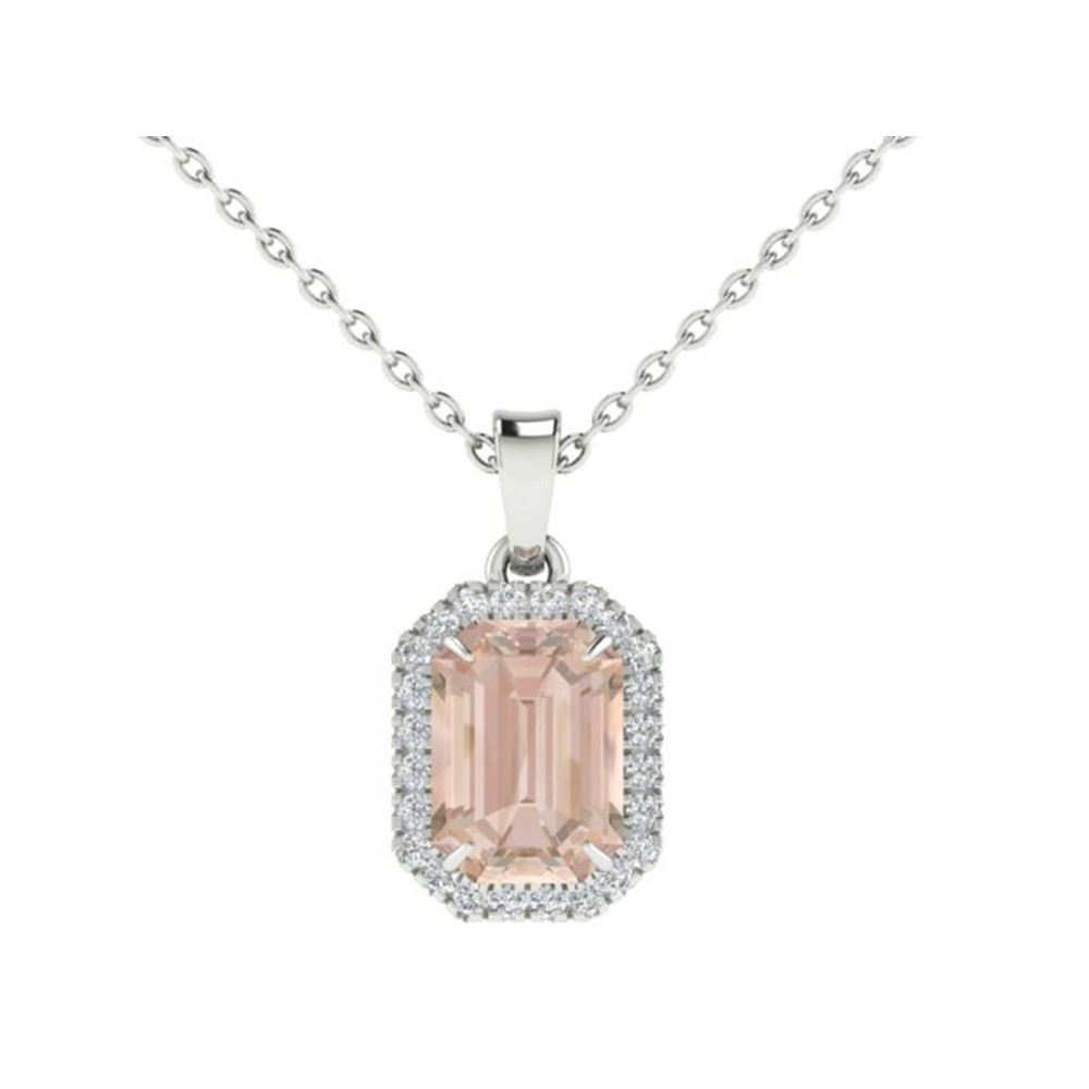 SKU: 21364 ---- 2.70 ctw Morganite & Micro Pave Diamond Necklace 18k White Gold