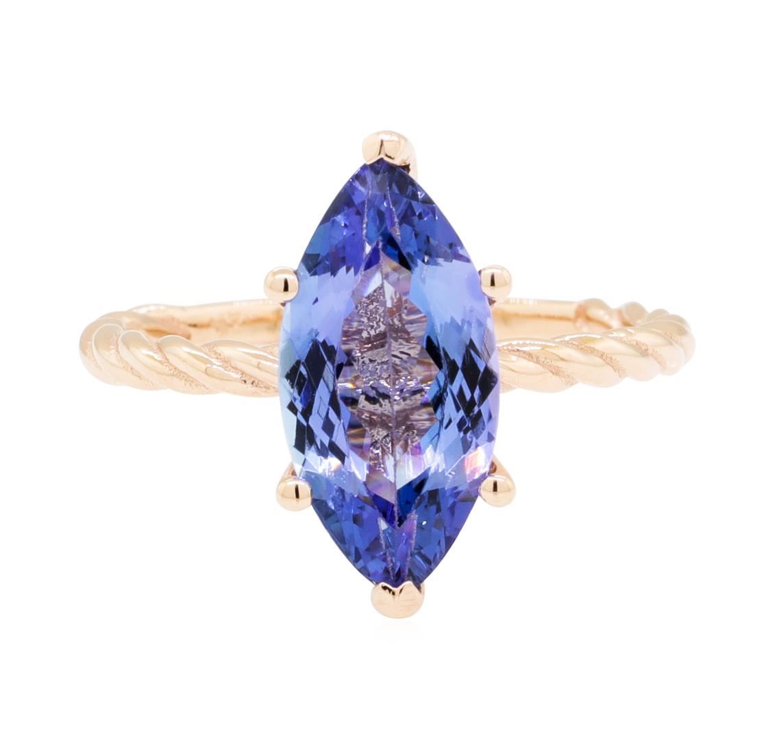 One lady's ring featuring: 14KT rose gold weighing 3.1 grams containing one tanzanite weighing 2.70ct.