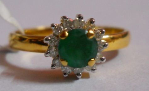 Ring of total weight 2.708g in 14kt 2.596g Gold ,Diamond:0.15 Ctw, Emerald:0.41 Ctw