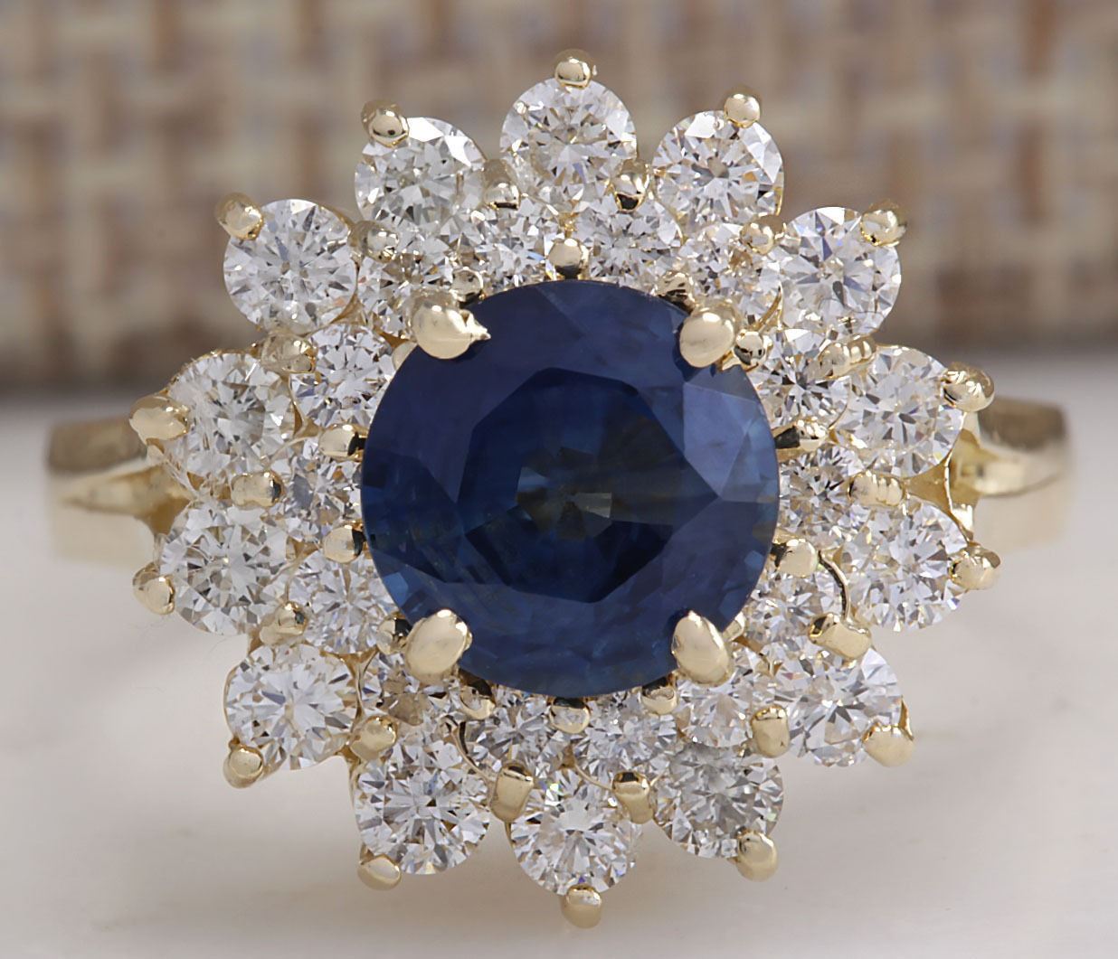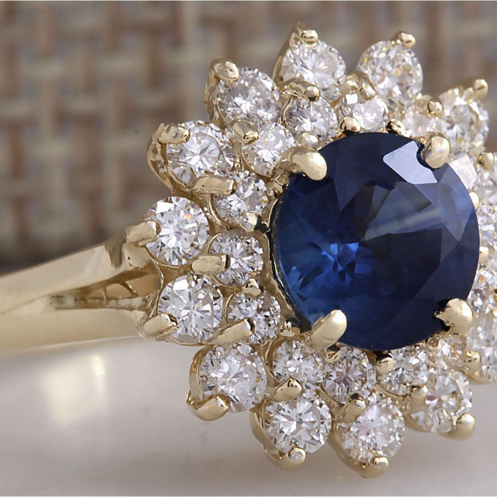 2.71 CTW Natural Blue Sapphire Diamond Ring 18K Solid Yellow Gold