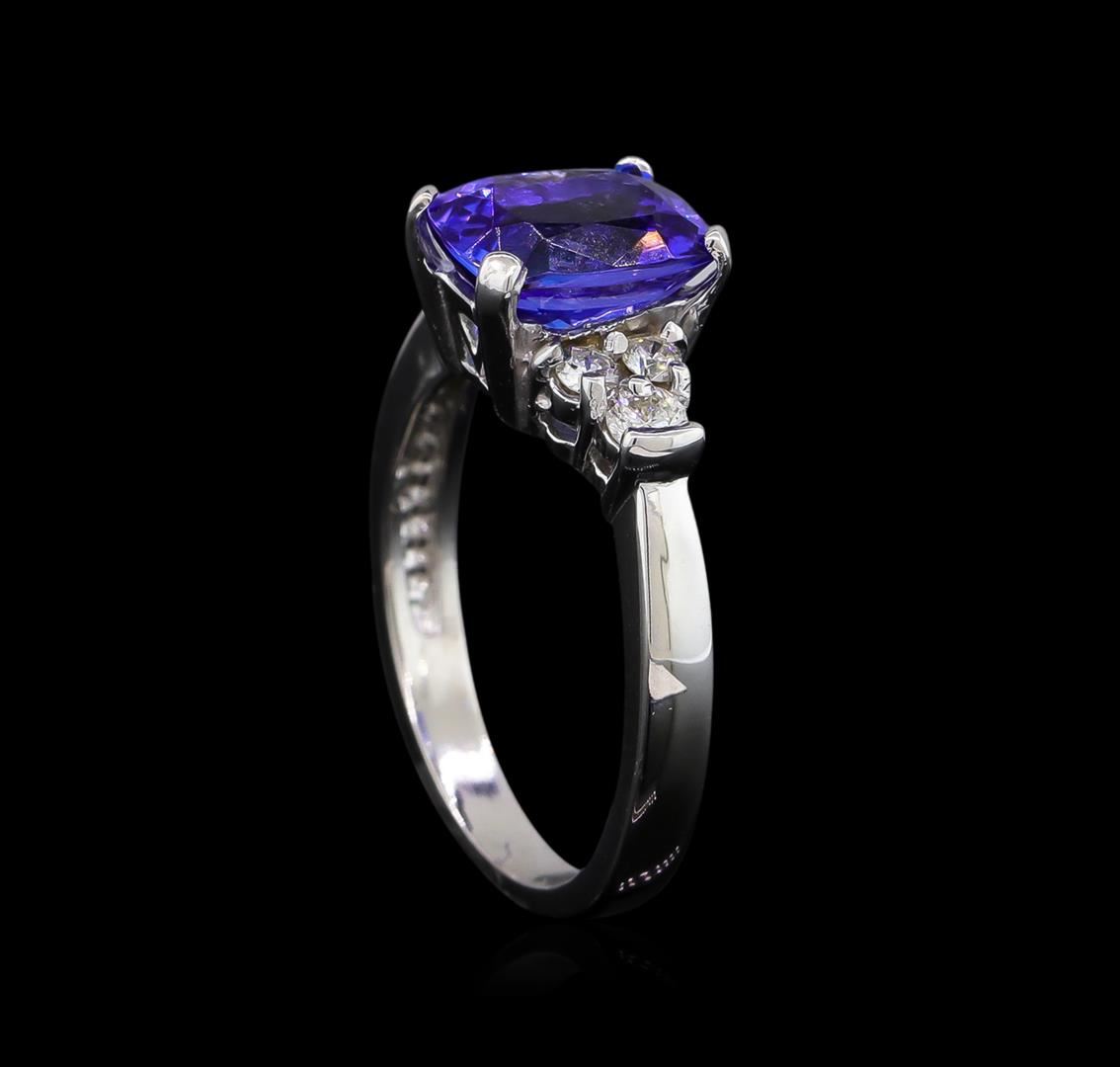 One ring featuring: 14KT white gold weighing 3.27 grams containing one tanzanite with a total weight of 2.72ct and side diamonds with a total weight of 0.28ct.