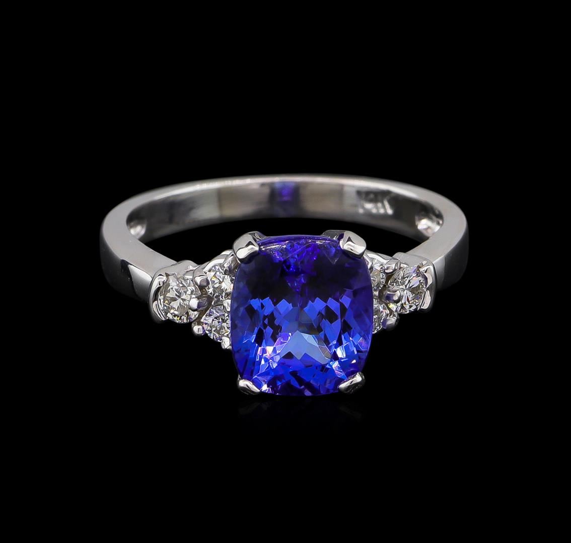 One ring featuring: 14KT white gold weighing 3.27 grams containing one tanzanite with a total weight of 2.72ct and side diamonds with a total weight of 0.28ct.