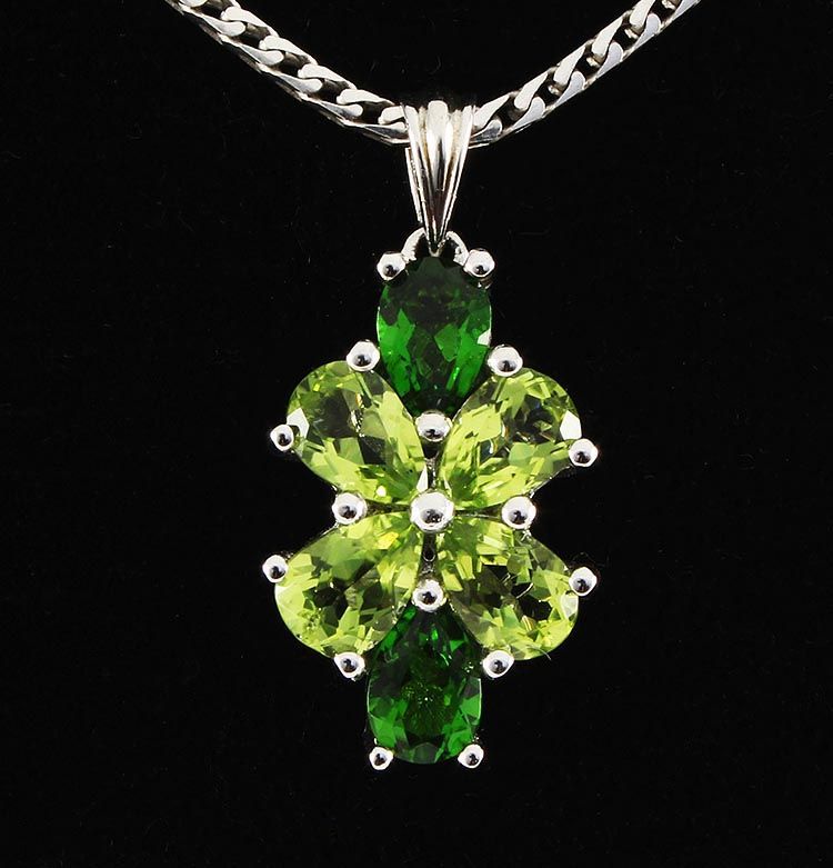 2.72CTW Chorme Diopside&Peridot Silver Pendant 1.76g **|**|** 0.96 Inches Long Cute Flower Design Pendant with Pear Shape 6x4mm Peridot and Chorme Diopside Gemstone ; MSRP: $100