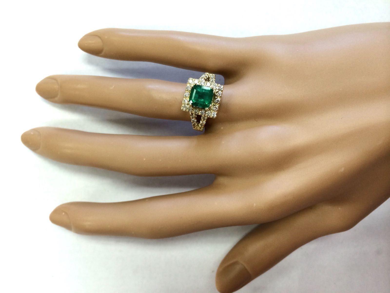 2.73 CTW Natural Emerald And Diamond Ring In 14k Yellow Gold