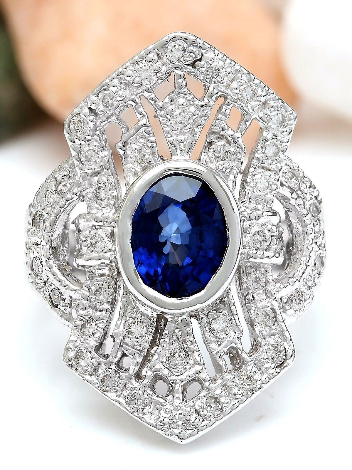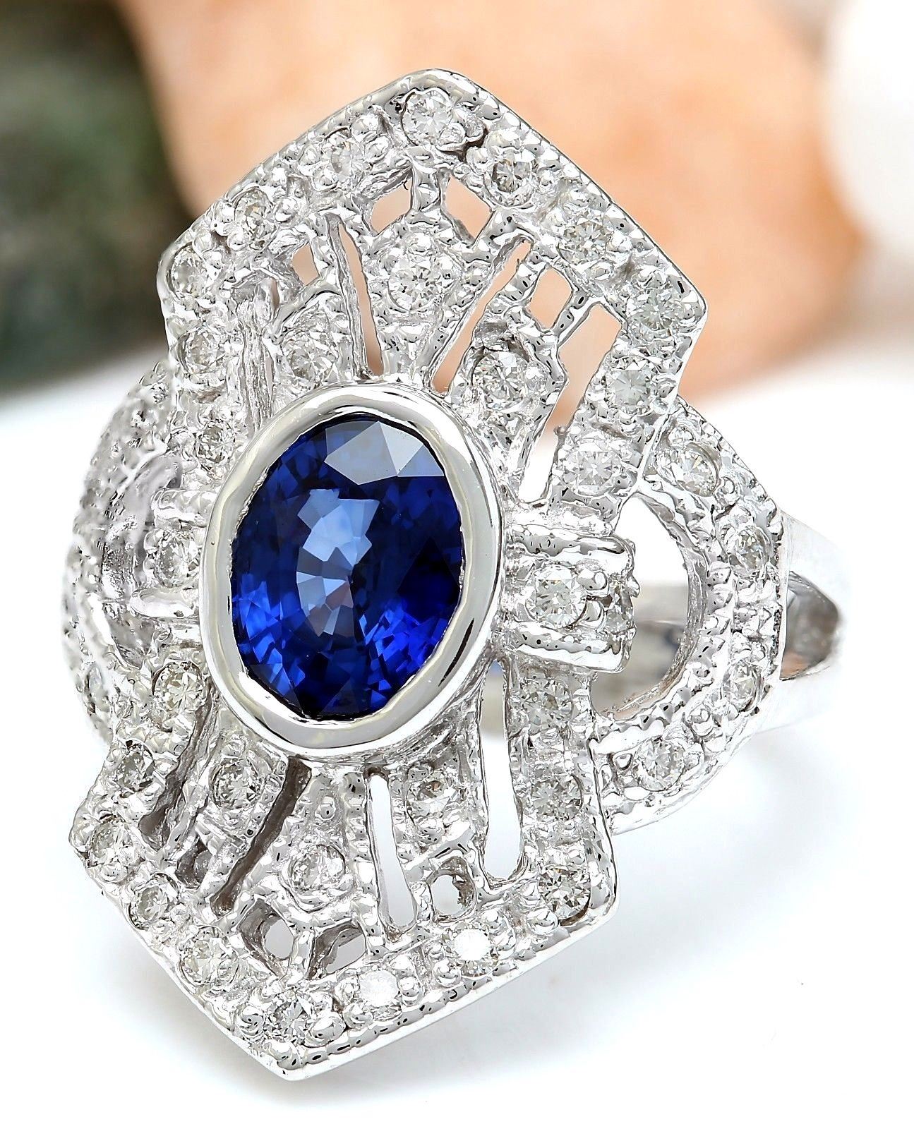 2.73 CTW Natural Sapphire 18K Solid White Gold Diamond Ring