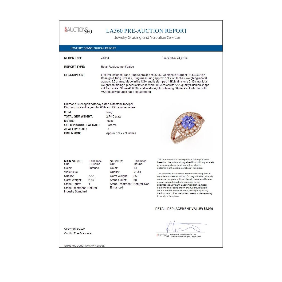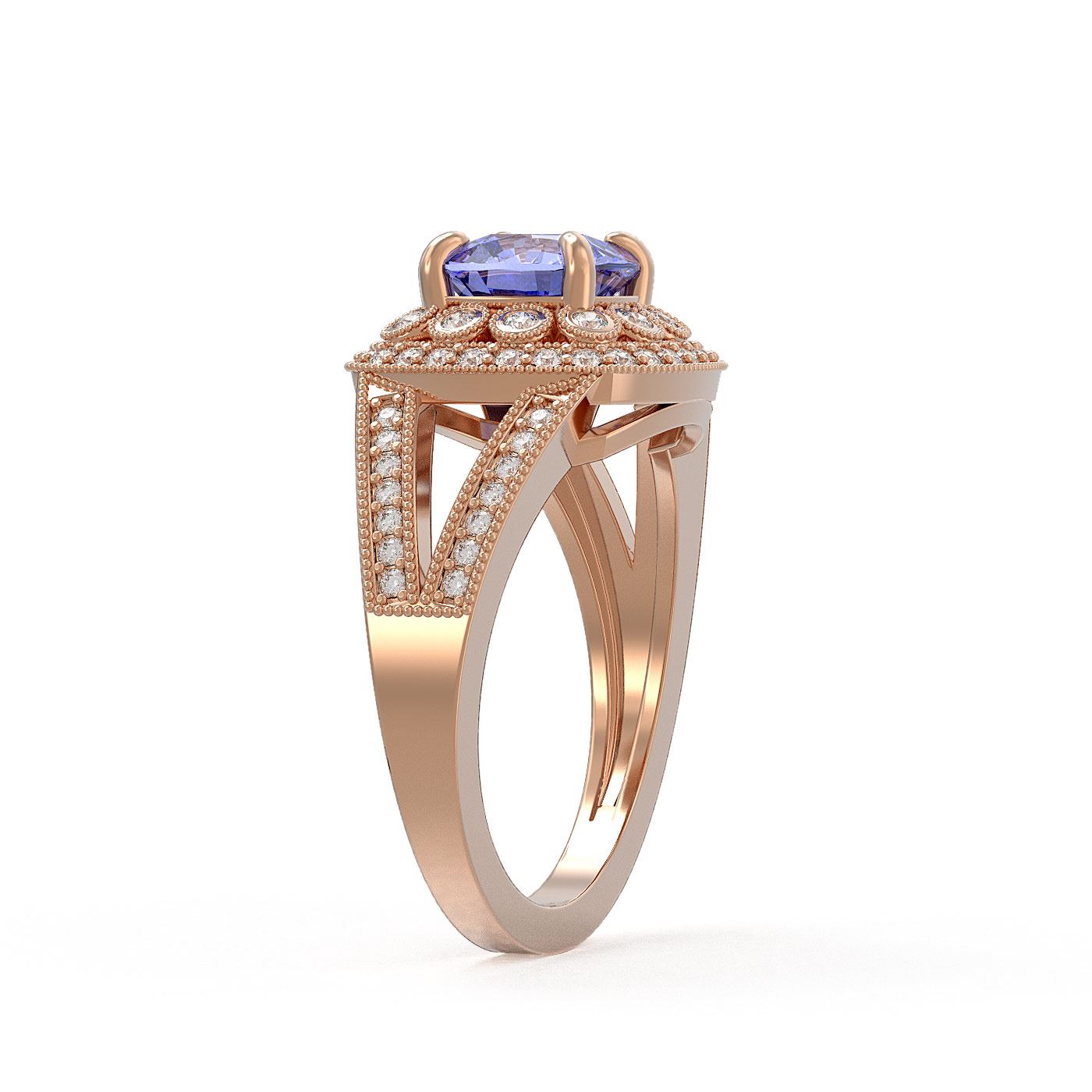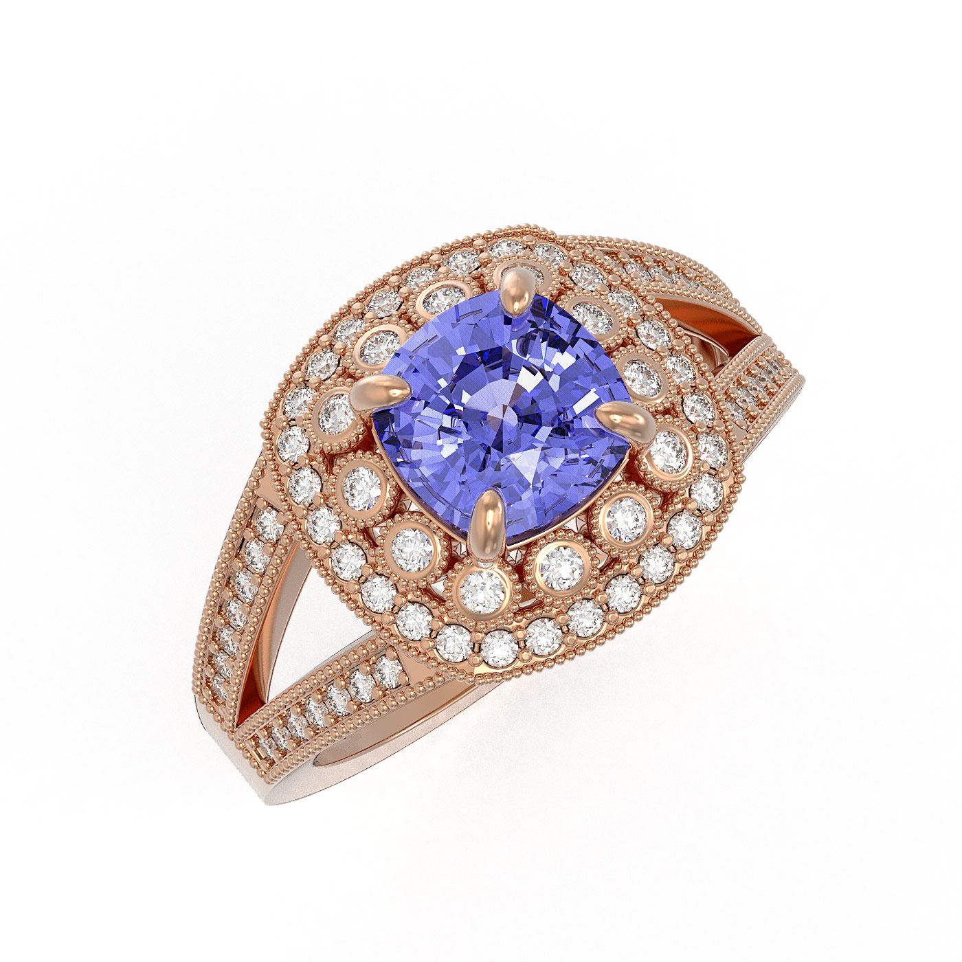 REF-101H8R - SKU: 44034 ---- 2.74 ctw Certified Tanzanite & Diamond Victorian Ring 14K Rose Gold