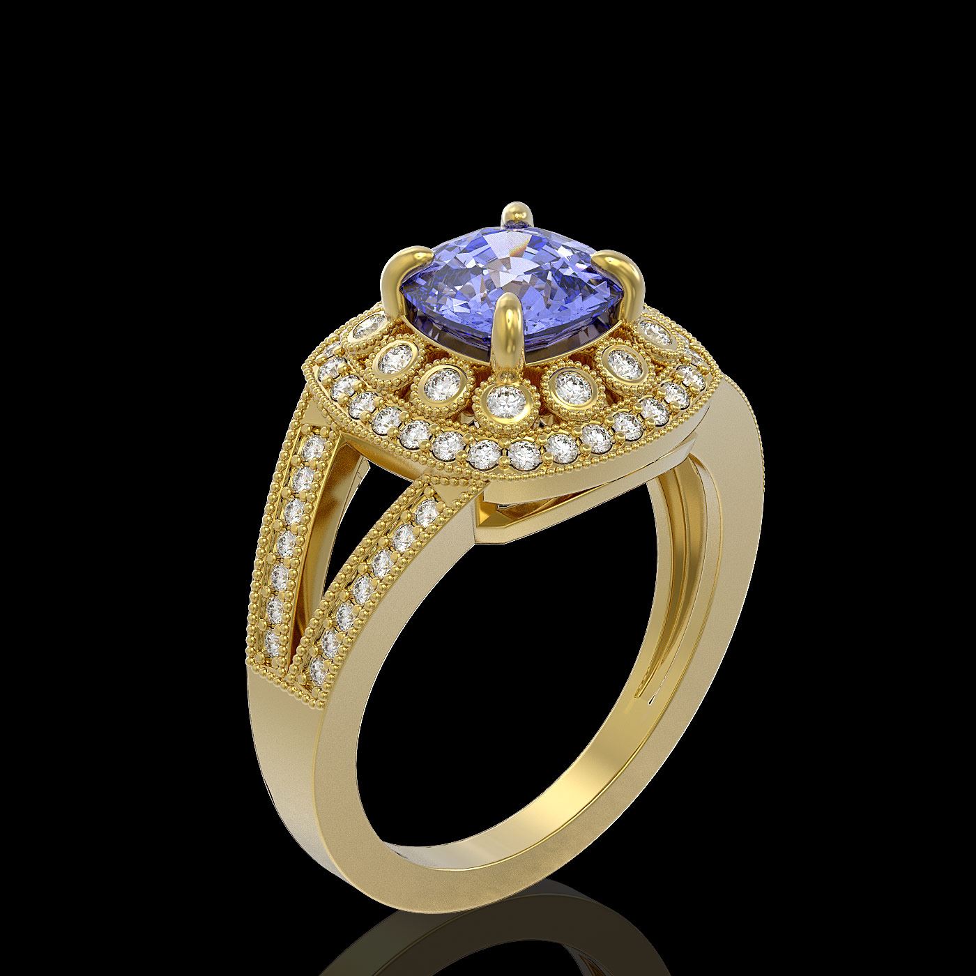 SKU: 44035 ---- 2.74 ctw Certified Tanzanite & Diamond Victorian Ring 14K Yellow Gold