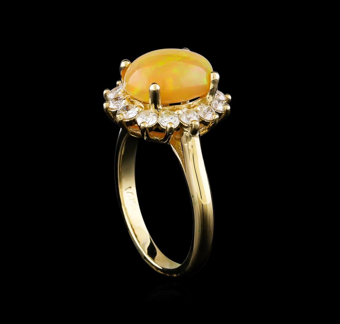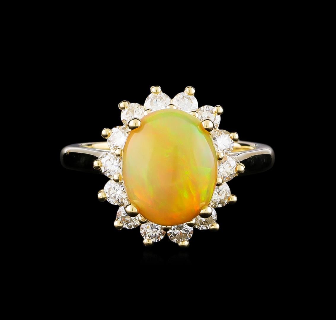 One ring featuring: 14KT yellow gold weighing 4.96 grams containing one opal weighing 2.74ct and diamonds weighing 0.80ctw.