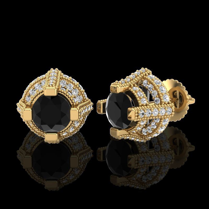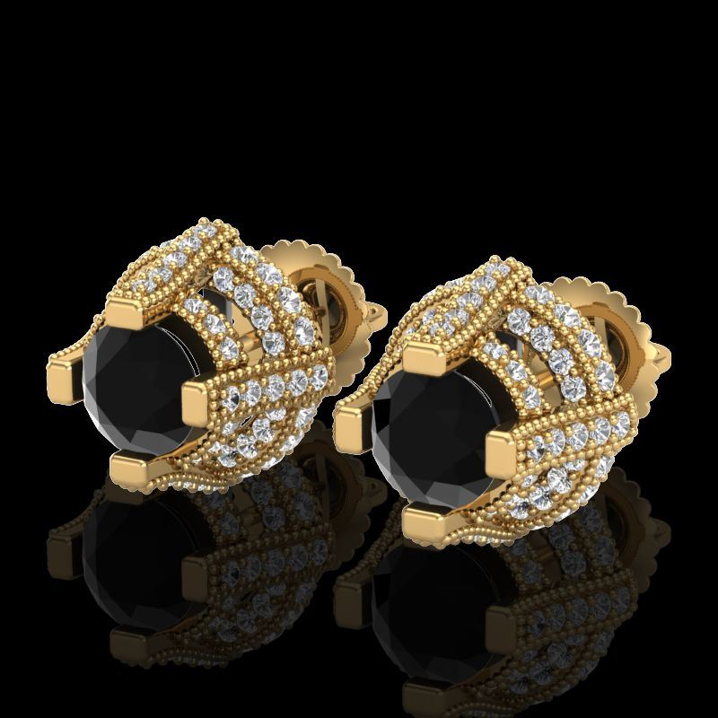 REF-180Y2K -37627 ---- 2.75 CTW Fancy Black Diamond Solitaire Micro Pave Stud Earrings 18K Yellow Gold ---- Luxury Designer Brand Earring Appraised at $10,900 Certificate Number US37627 18k Yellow gold, Earring Size is Larger, Earring measuring approx. Uniform, weighing in total approx. 8 grams. Made in the USA and is stamped 18k, Main stone 1.11 carat total weight containing 2 pieces of Black Opaque color with VS quality Round shape cut Diamond , Stone #2 1.64 carat total weight containing 128 pieces of H-I color with VS/SI quality Round shape cut Diamond
