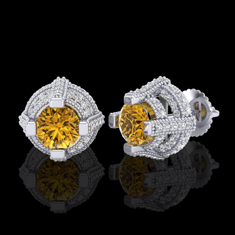REF-236N4Y -37630 ---- 2.75 CTW Intense Fancy Yellow Diamond Micro Pave Stud Earrings 18K White Gold ---- Luxury Designer Brand Earring Appraised at $14,300 Certificate Number US37630 18k White gold, Earring Size is Larger, Earring measuring approx. Uniform, weighing in total approx. 8 grams. Made in the USA and is stamped 18k, Main stone 1.11 carat total weight containing 2 pieces of Intense Fancy Yellow color with SI quality Round shape cut Diamond , Stone #2 1.64 carat total weight containing 128 pieces of H-I color with VS/SI quality Round shape cut Diamond