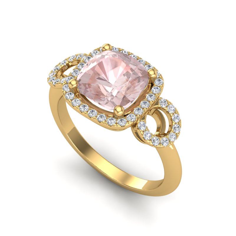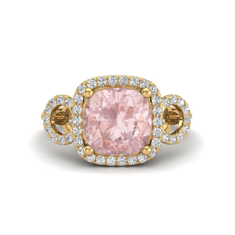 REF-70W9F -23007 ---- 2.75 CTW Morganite & Micro VS/SI Diamond Ring 14K Rose Gold ---- Luxury Designer Brand Ring Appraised at $4,700 Certificate Number US23007 14k Rose gold, Ring Size is 7, Ring measuring approx. 7/16"X7/16" , weighing in total approx. 4 grams. Made in the USA and is stamped 14k, Main stone 2.3 carat total weight containing 1 pieces of Medium Orange Pink color with AAA quality Cushion shape cut Morganite , Stone #2 0.45 carat total weight containing 40 pieces of H-I color with VS/SI quality Round shape cut Diamond
