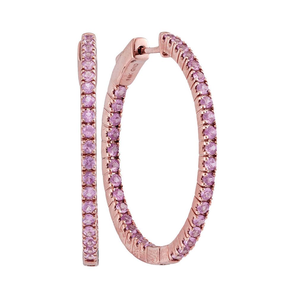 REF-89W9K- SKU: GD107233 ---- 2.75 CTW Pink Sapphire Hoop Earrings 14KT Rose Gold