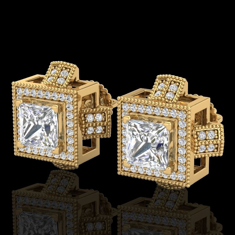 REF-684W3F -37189 ---- 2.75 CTW Princess VS/SI Diamond Micro Pave Stud Earrings 18K Yellow Gold ---- Luxury Designer Brand Earring Appraised at $38,700 Certificate Number US37189 18k Yellow gold, Earring Size is Larger, Earring measuring approx. Uniform, weighing in total approx. 6 grams. Made in the USA and is stamped 18k, Main stone 2.07 carat total weight containing 2 pieces of H-J color with VS/SI quality Princess shape cut Diamond , Stone #2 0.68 carat total weight containing 88 pieces of H-I color with VS/SI quality Round shape cut Diamond