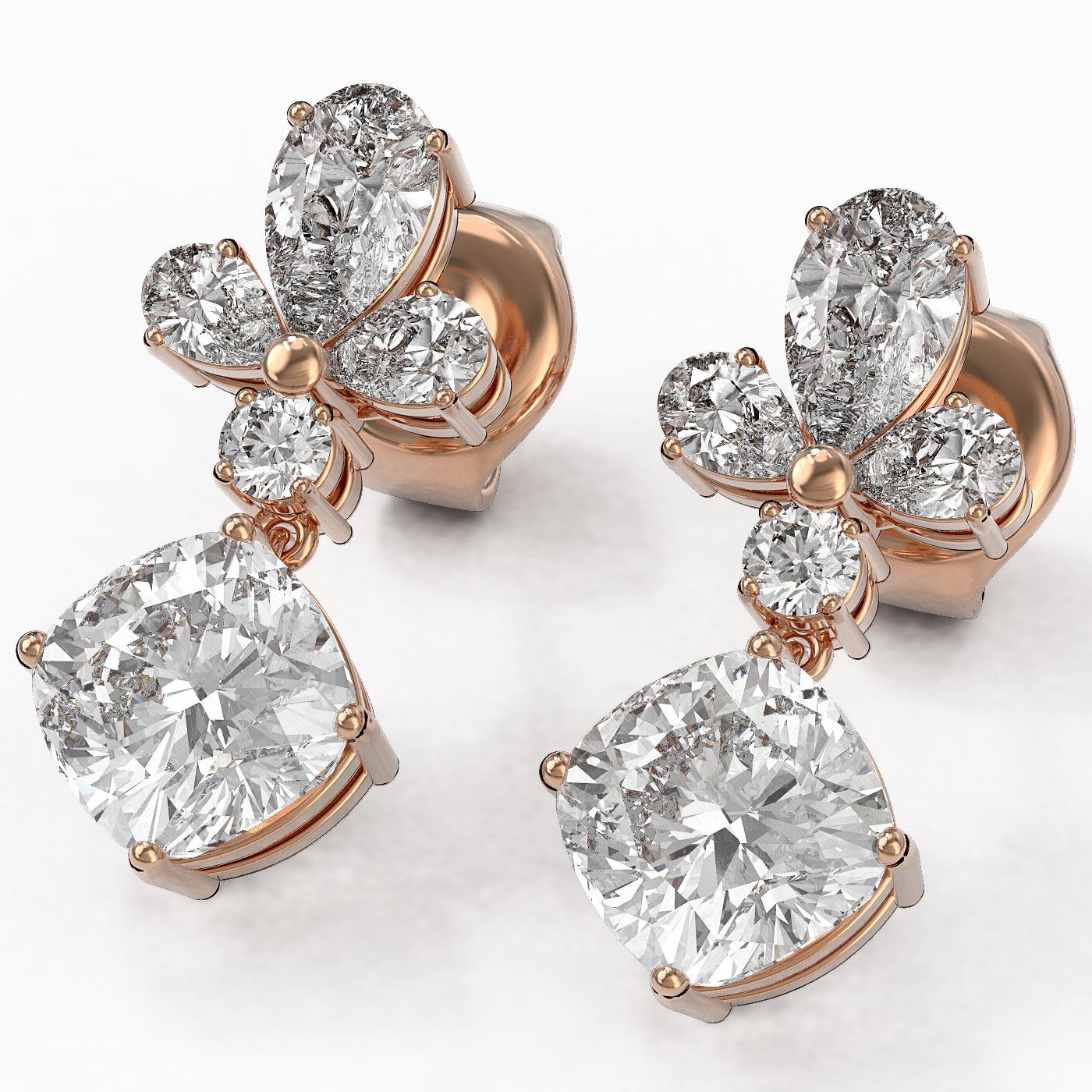SKU: 48796 ---- 2.75 ctw Cushion Cut Diamond Designer Earrings 18K Rose Gold