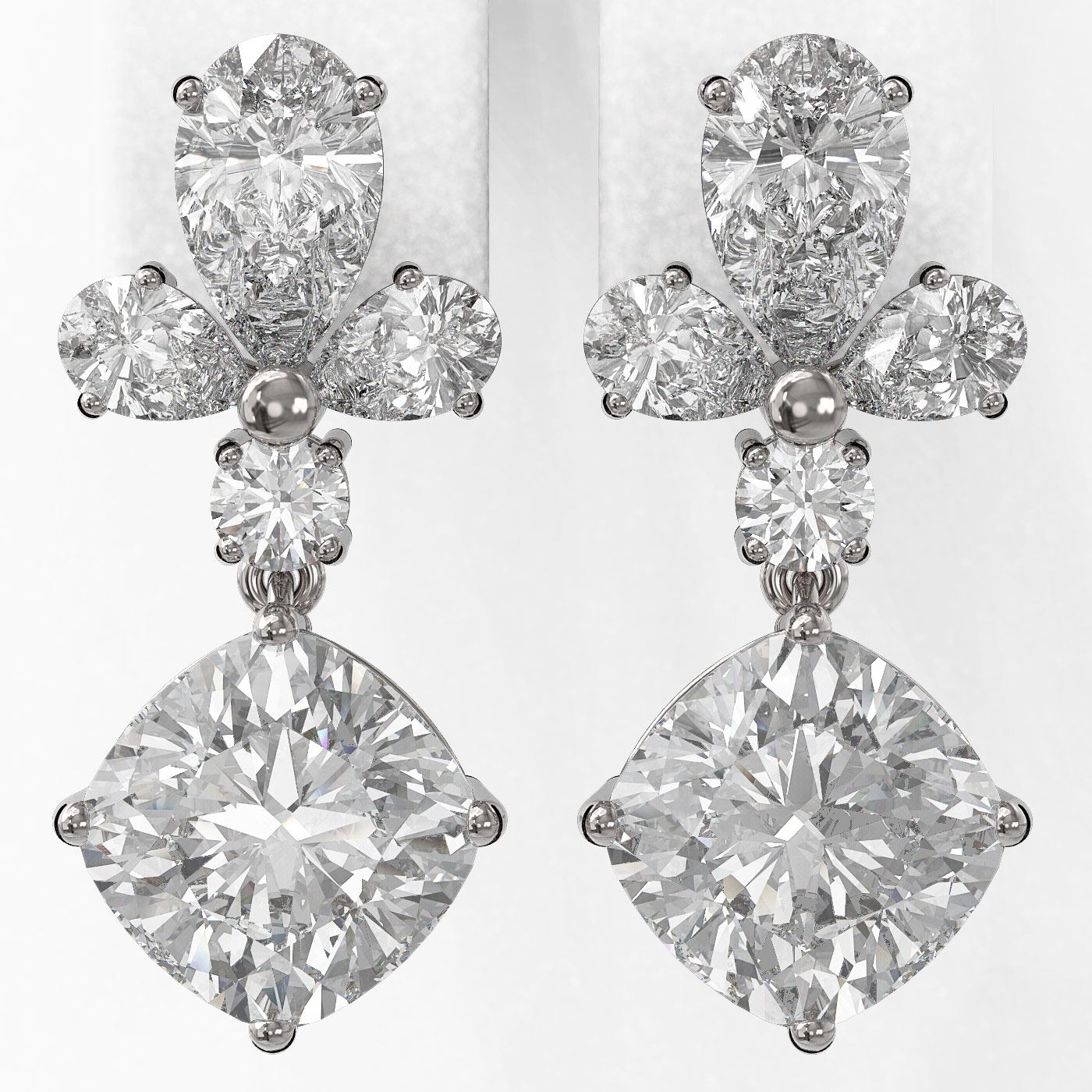 2.75 ctw Cushion Cut Diamond Designer Earrings 18K White Gold