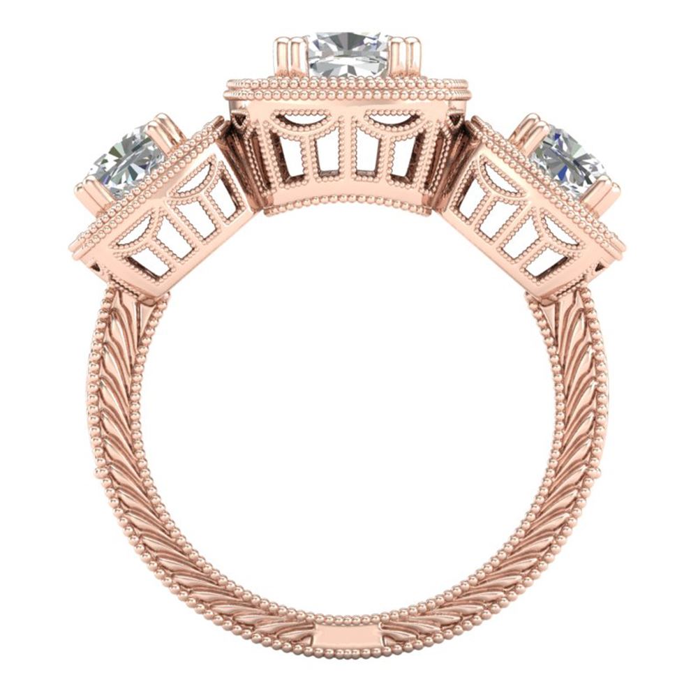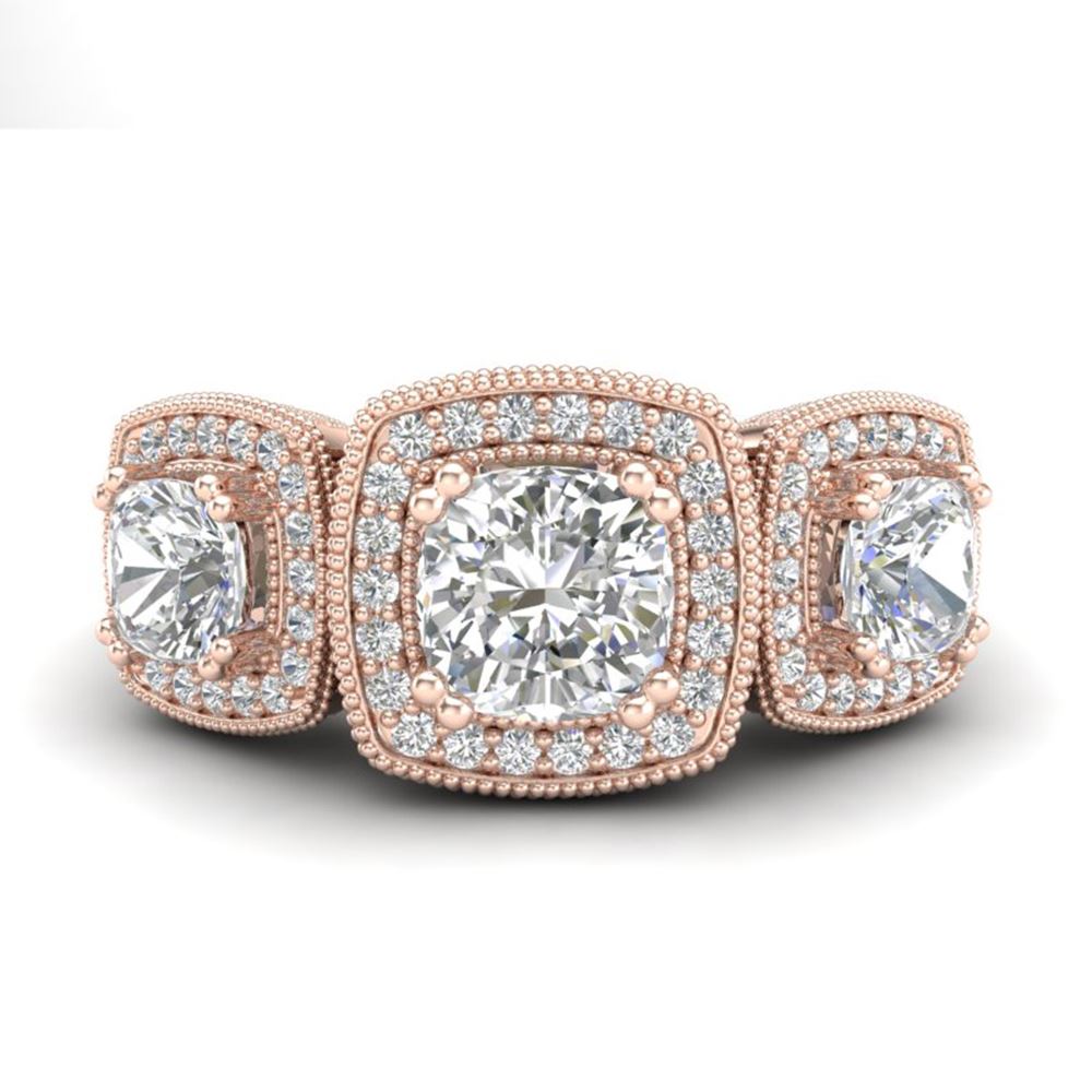 REF-609H3R - SKU: 37041 ---- 2.75 ctw Cushion VS/SI Diamond Art Deco 3 Stone Ring 18k Rose Gold