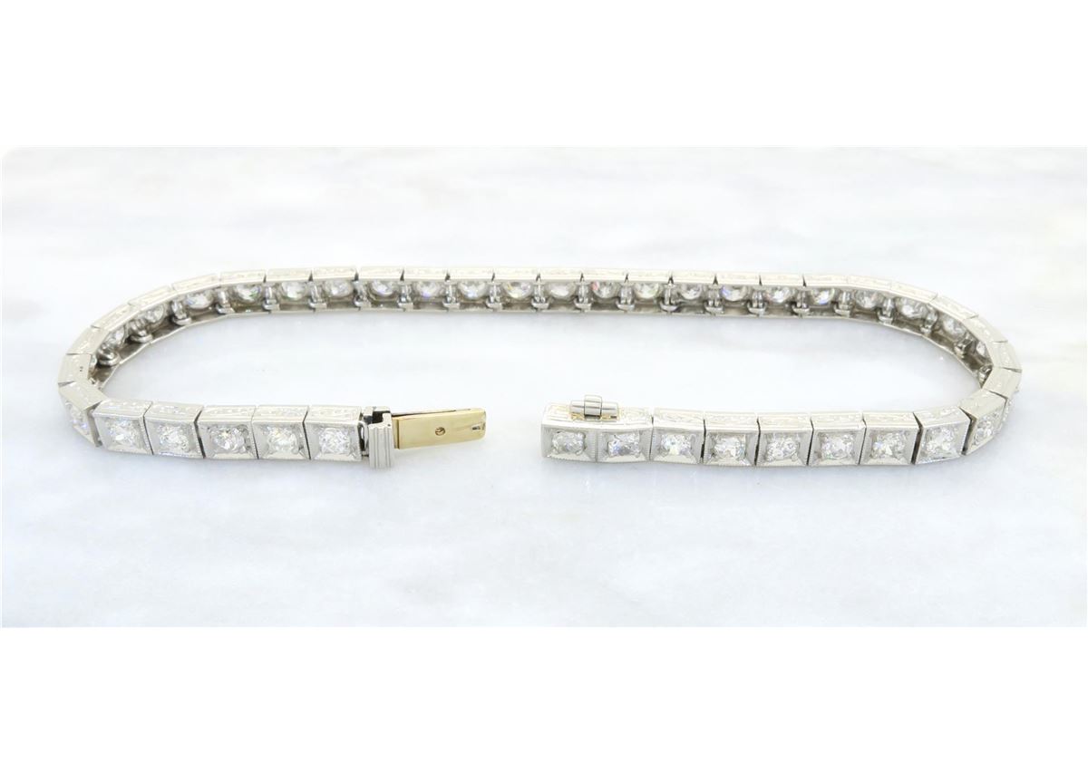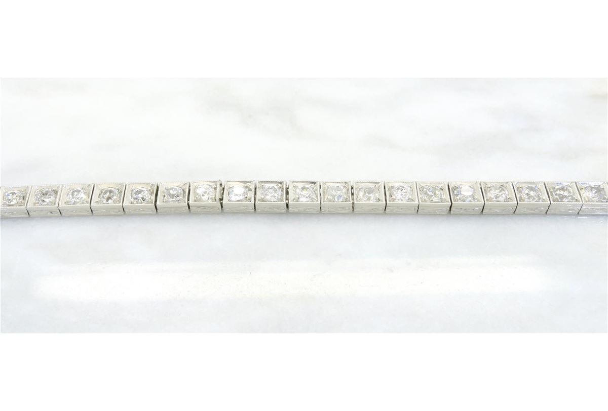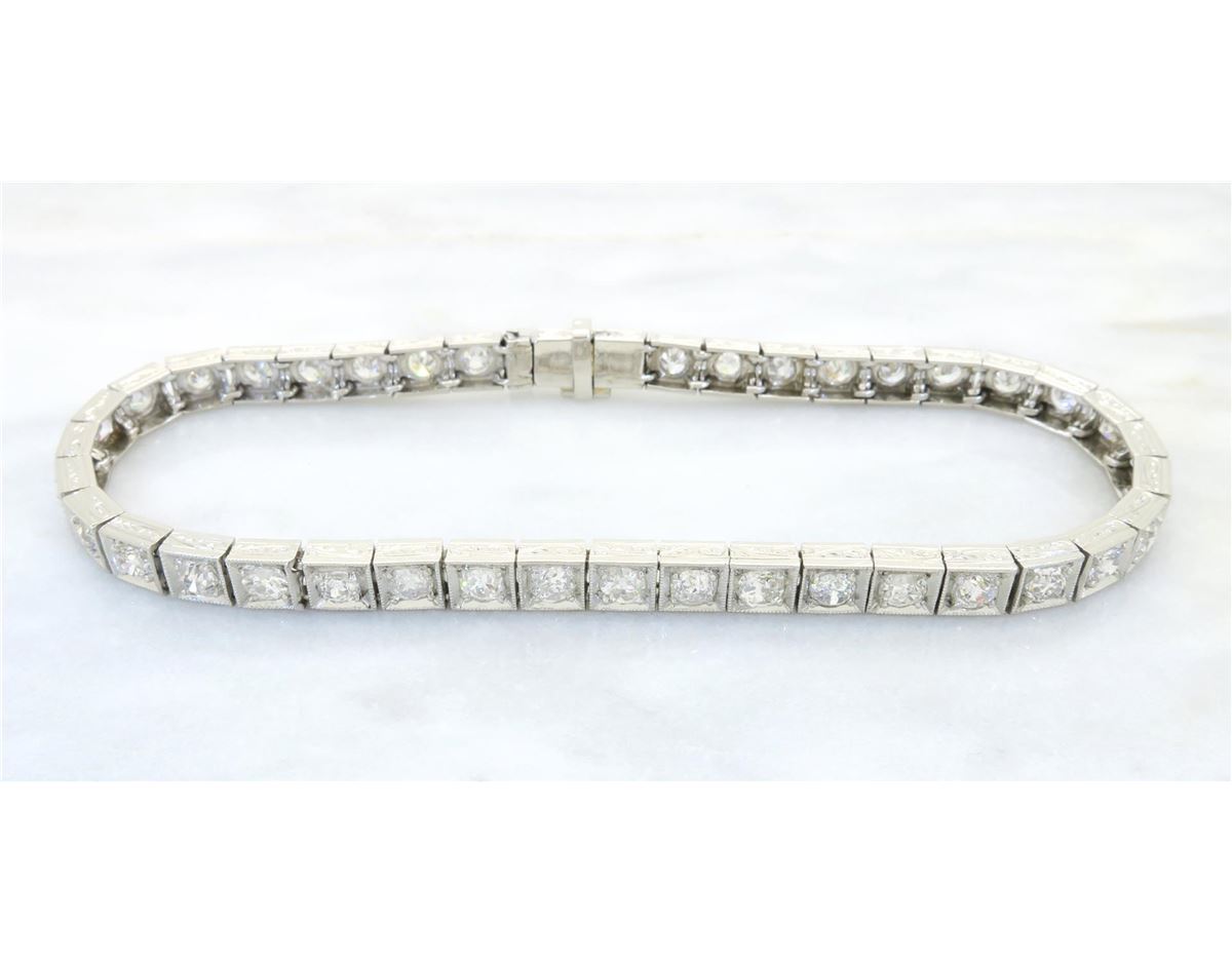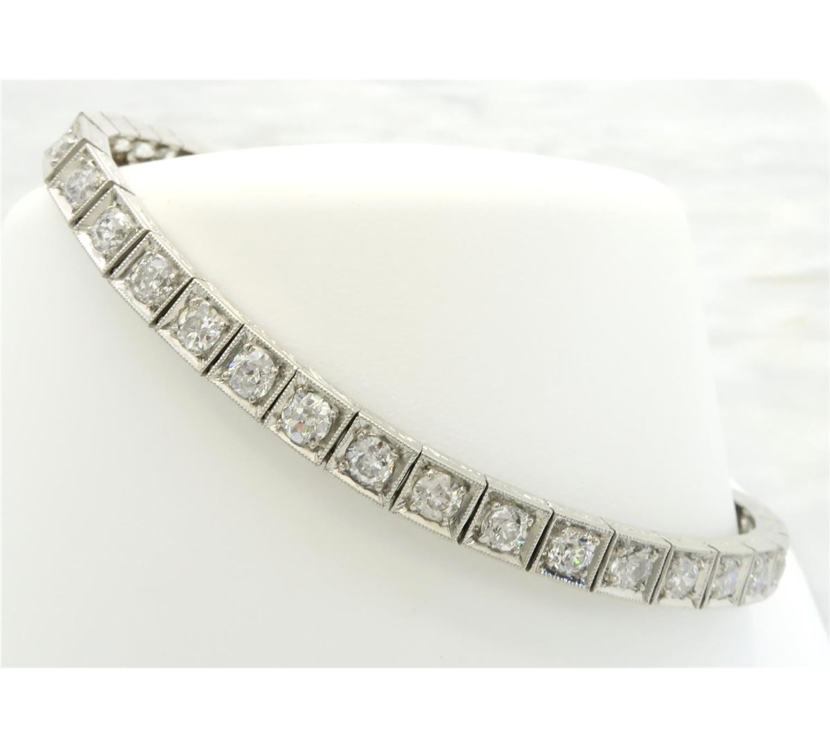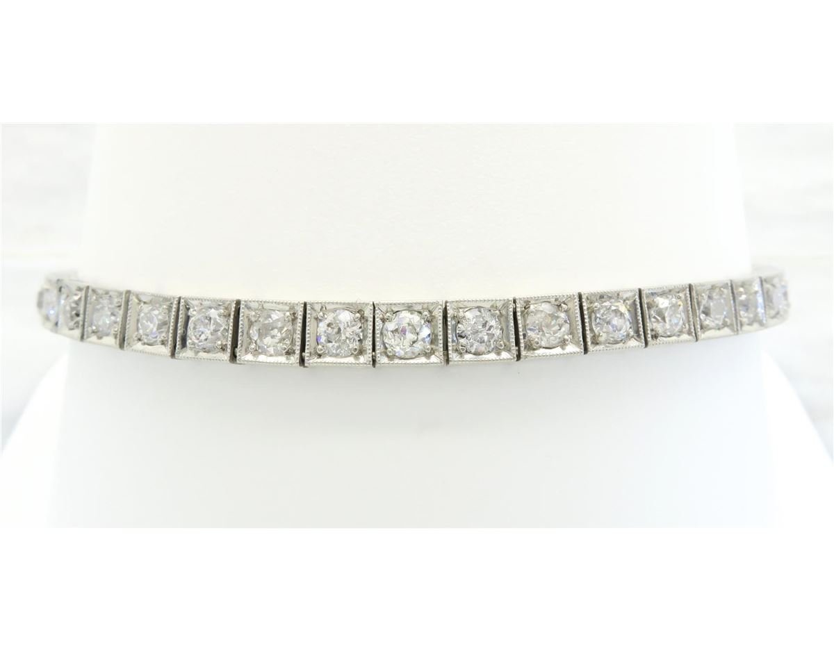 One tested Platinum diamond bracelet. Containing: 40 Old European Cut Diamonds. Clarity: I-SI, Color: G-I. Approximate total diamond weight: 2.75CTW. All diamonds graded as mounting permits unless otherwise stated. Weight of bracelet: 15.1 grams, Size: 7" long