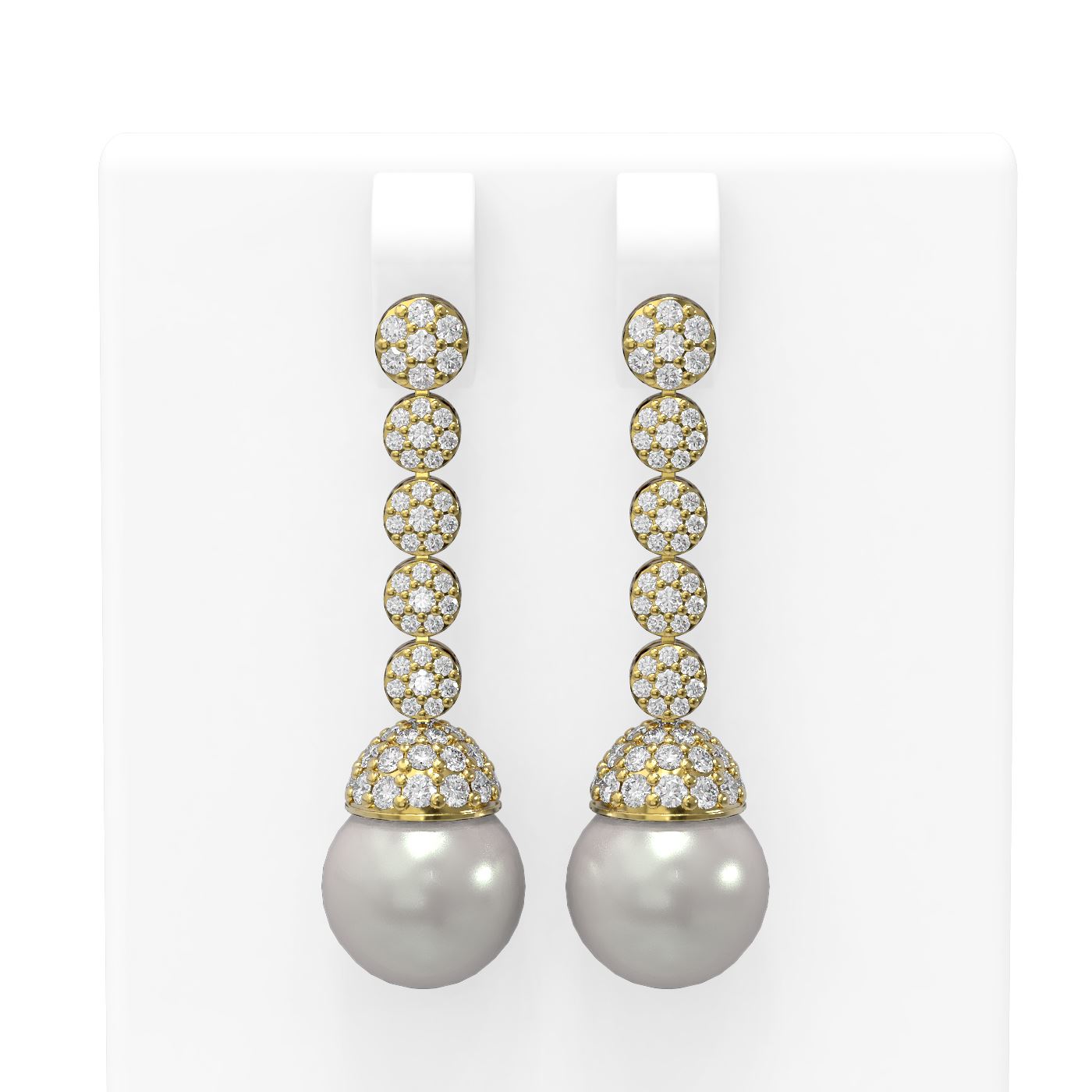 SKU: 61288 ---- 2.75 ctw Diamond & Pearl Earrings 18K Yellow Gold