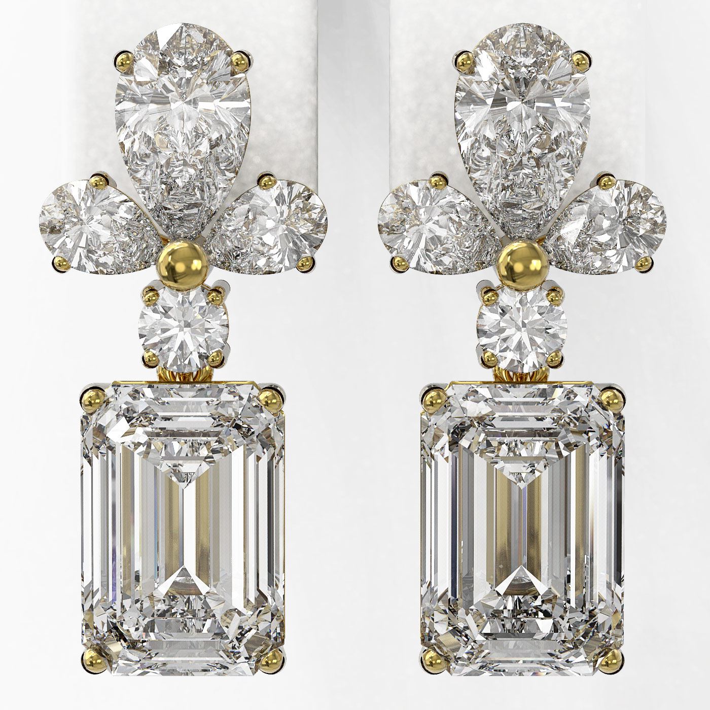 2.75 ctw Emerald Cut Diamond Designer Earrings 18K Yellow Gold