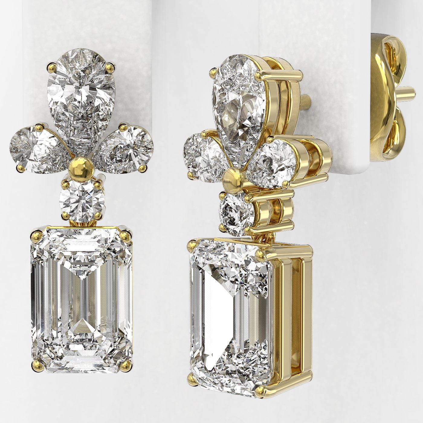 SKU: 48821 ---- 2.75 ctw Emerald Cut Diamond Designer Earrings 18K Yellow Gold