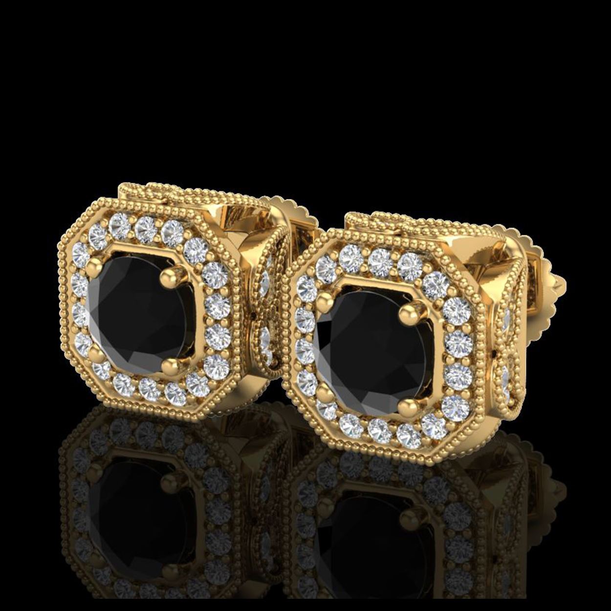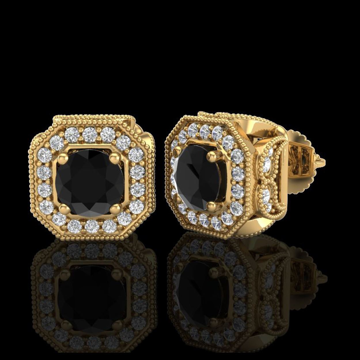 2.75 ctw Fancy Black Diamond Art Deco Stud Earrings 18K Yellow Gold