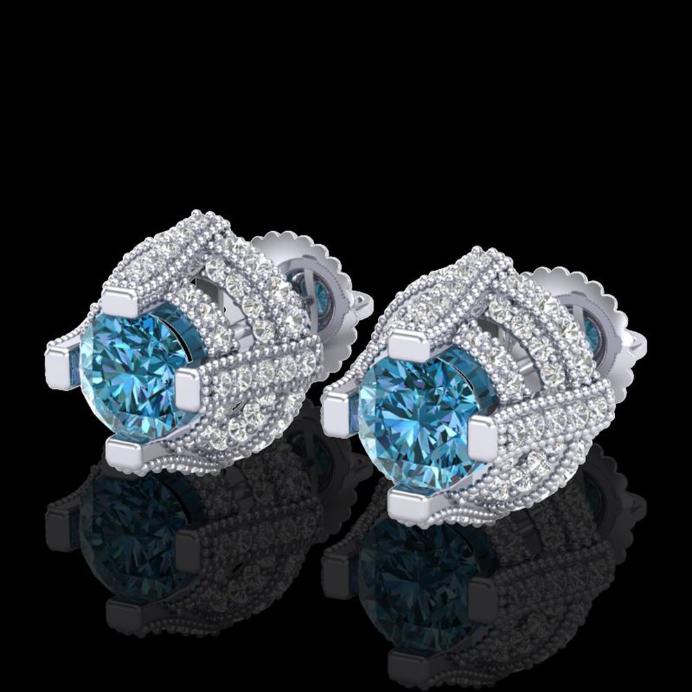 REF-236R4K - SKU: 37628 ---- 2.75 ctw Fancy Intense Blue Diamond Micro Pave Earrings 18k White Gold
